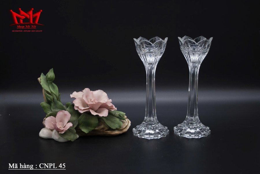 CẶP CHÂN NẾN HOA SEN GORHAM TRONG SUỐT CỔ ĐIỂN SẢN XUẤT TẠI ĐỨC.