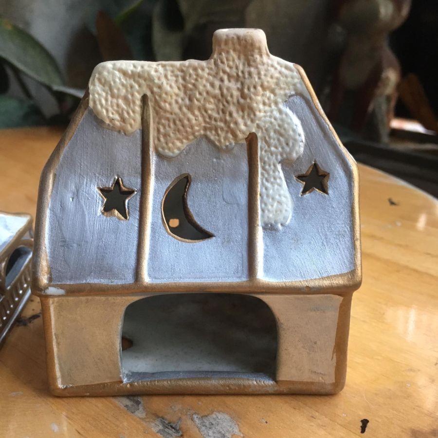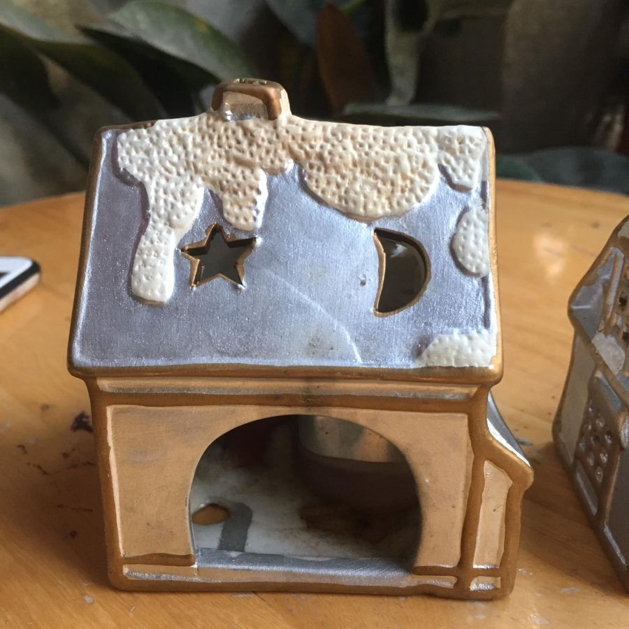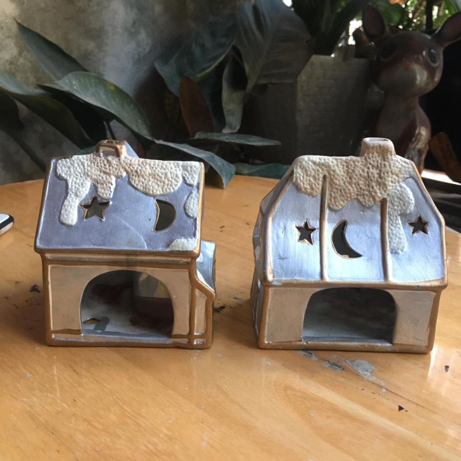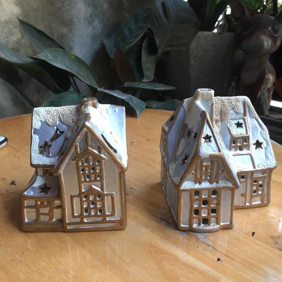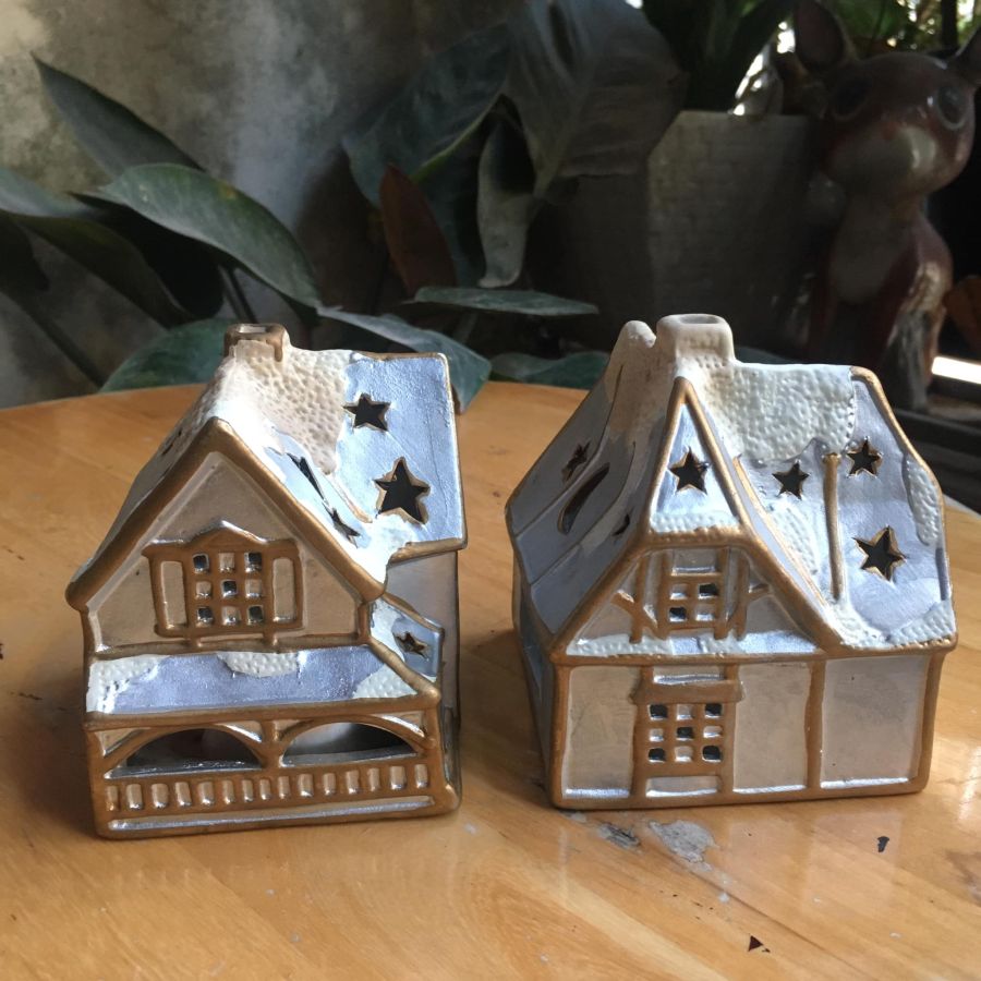 Cặp chân nến mô hình Biệt thự, bài trí thích hợp nhiều không gian, chất liệu gốm sơn nhũ bạc đường nét sắc sảo, sống động, tình trạng đẹp lành, kích thước cao 10 cm. Giá bán: 150 k / cặp + ship, nhận ship toàn quốc.