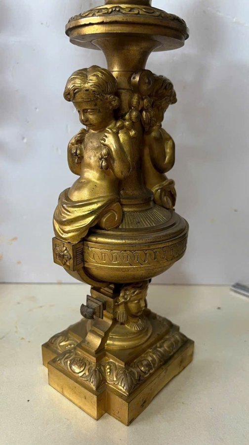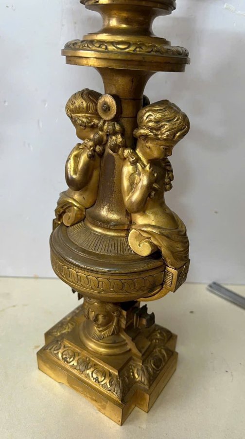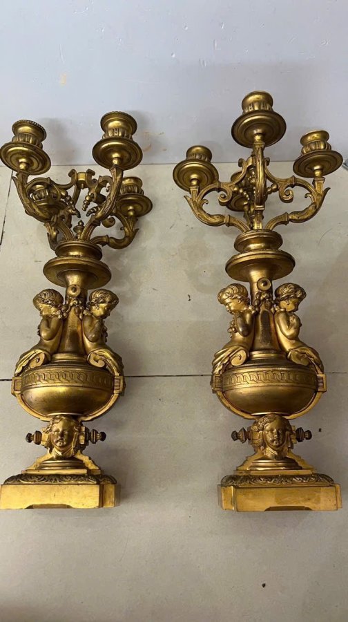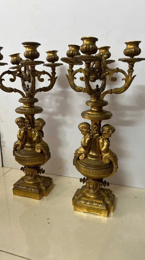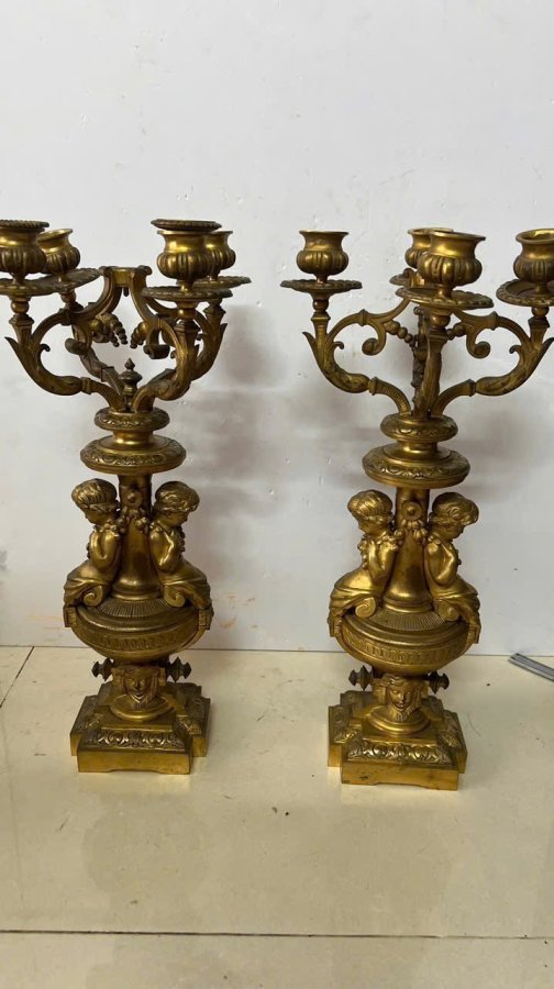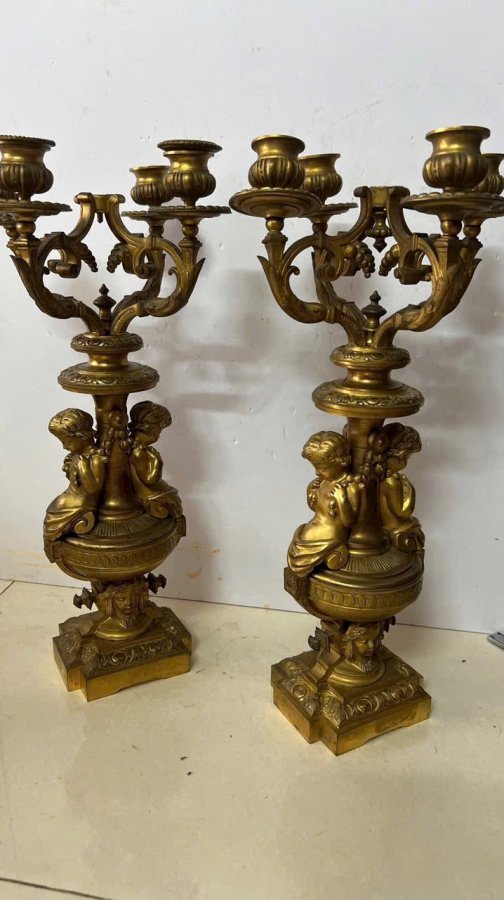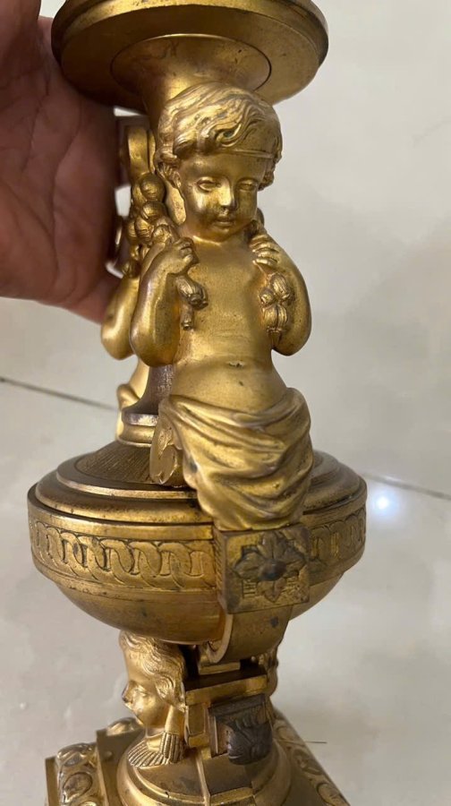 Cặp chân nến baby Pháp cổ sx TK 18, đồng đúc nước lắc kê vàng còn đẹp, cực kỳ sắc nét, nặng tầm 10kg cho các bác nào cần, lên đèn Vip hay đh tượng baby đều đc