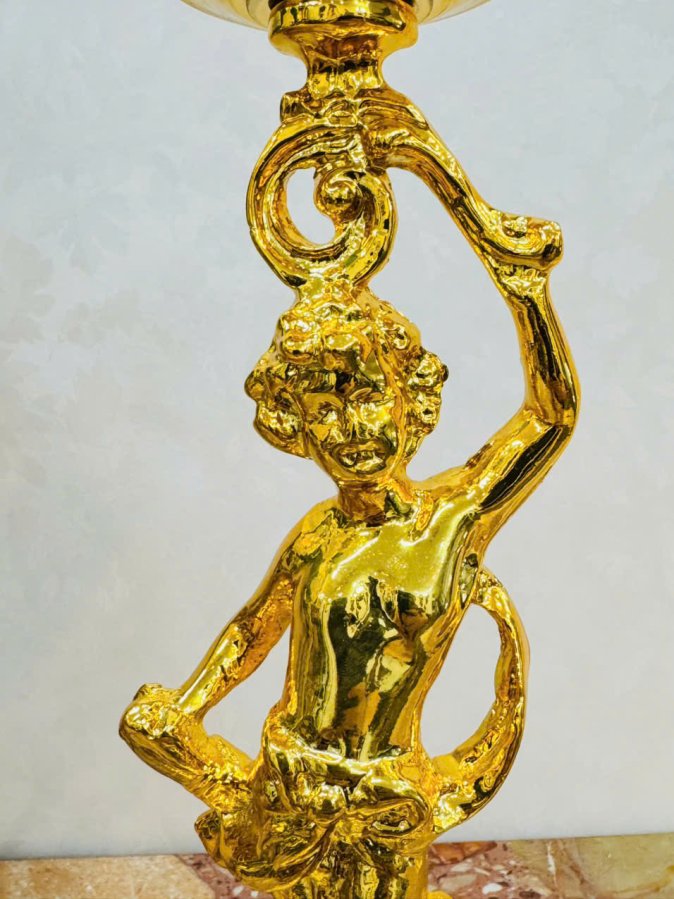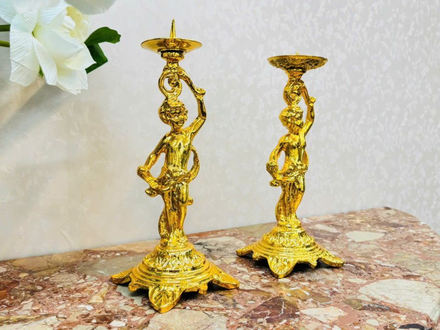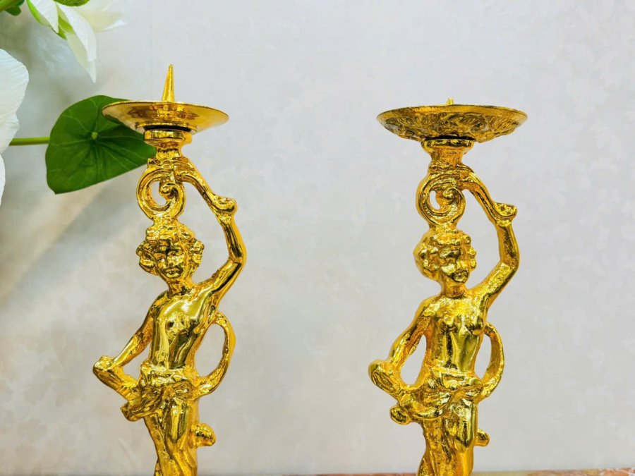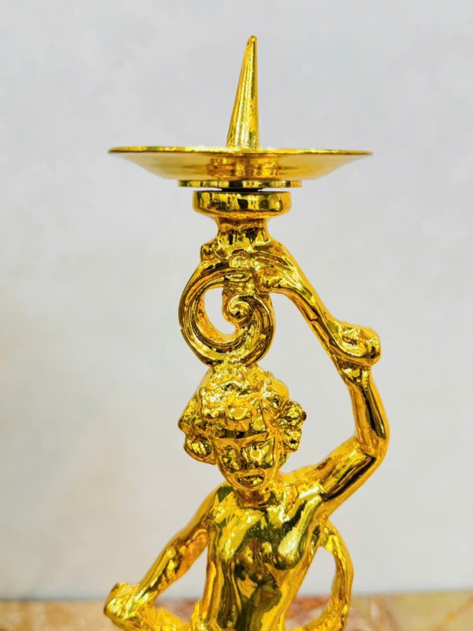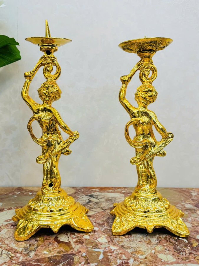 Cặp chân nến tượng baby đồng lắc kê vàng, sưu tầm Châu Âu