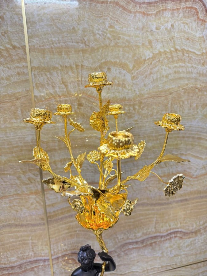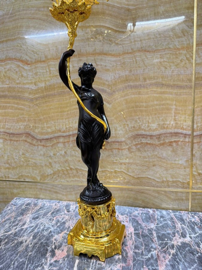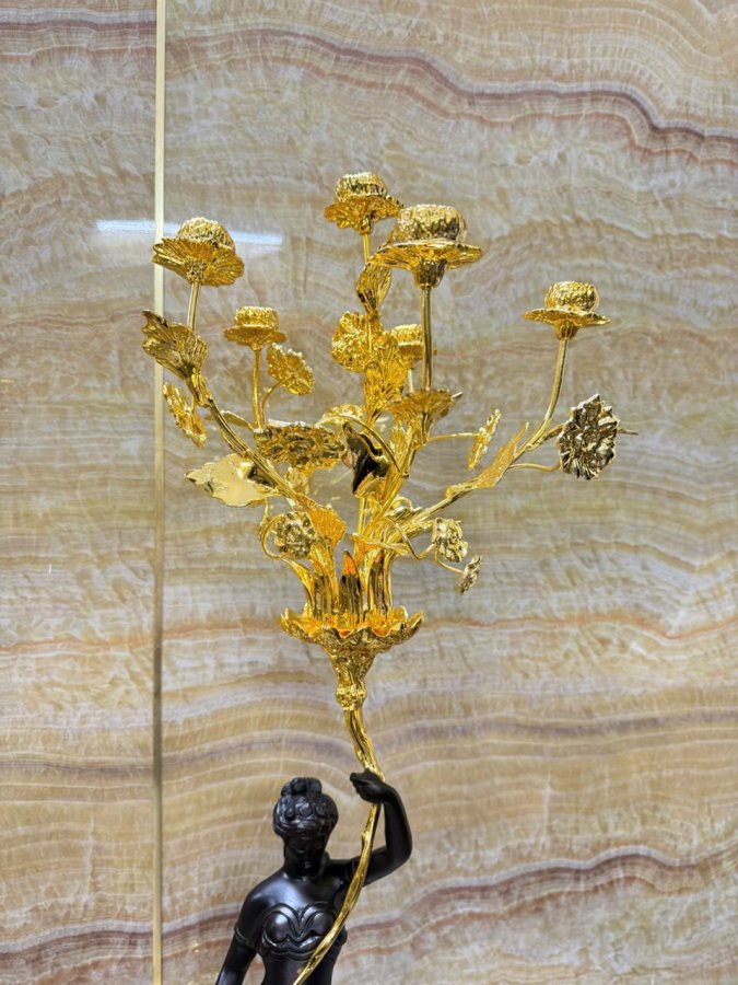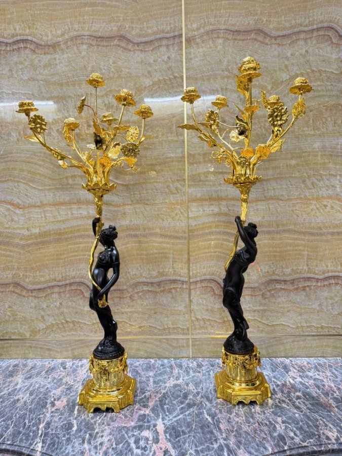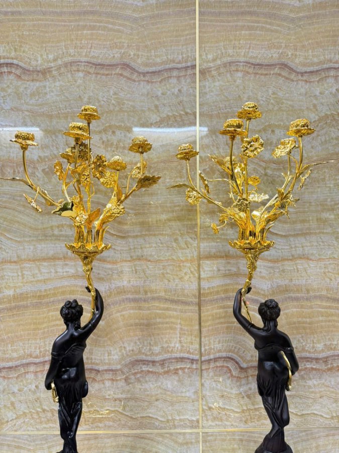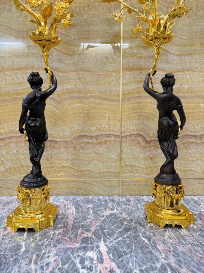 Cặp chân nến tượng đồng lắc kê vàng Châu Âu