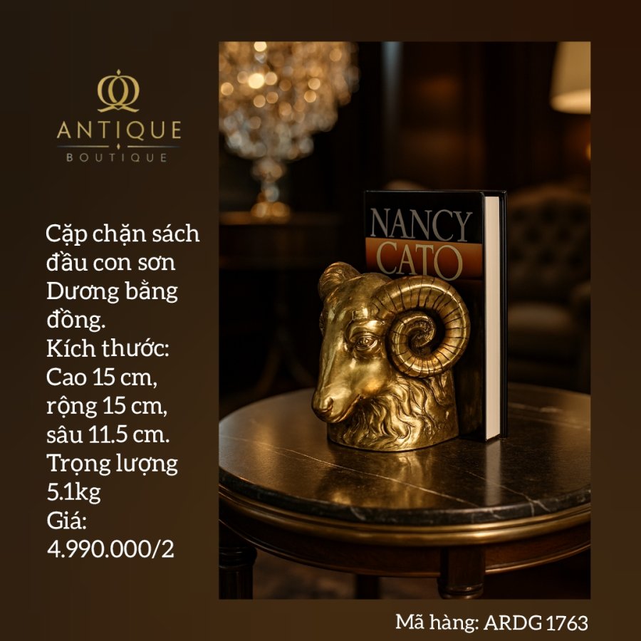 Cặp chặn sách đầu con Sơn.Dương bằng đồng.Kích thước: Cao 15 cm, rộng 15 cm, sâu 11.5 cm. Trọng lượng 5.1kg. Mã hàng: ARDG 1763