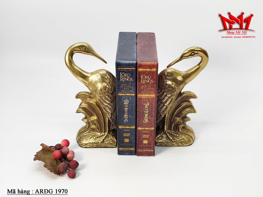 Cặp chặn sách hình cặp thiên nga được làm bằng đồng
