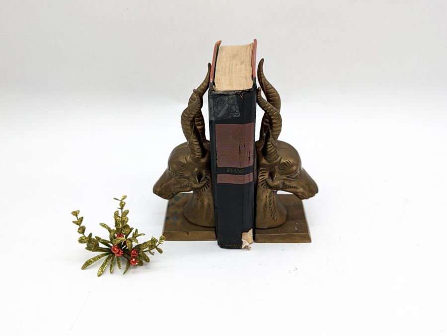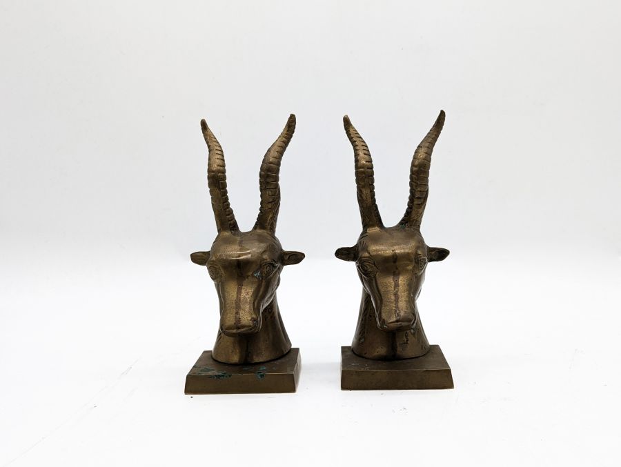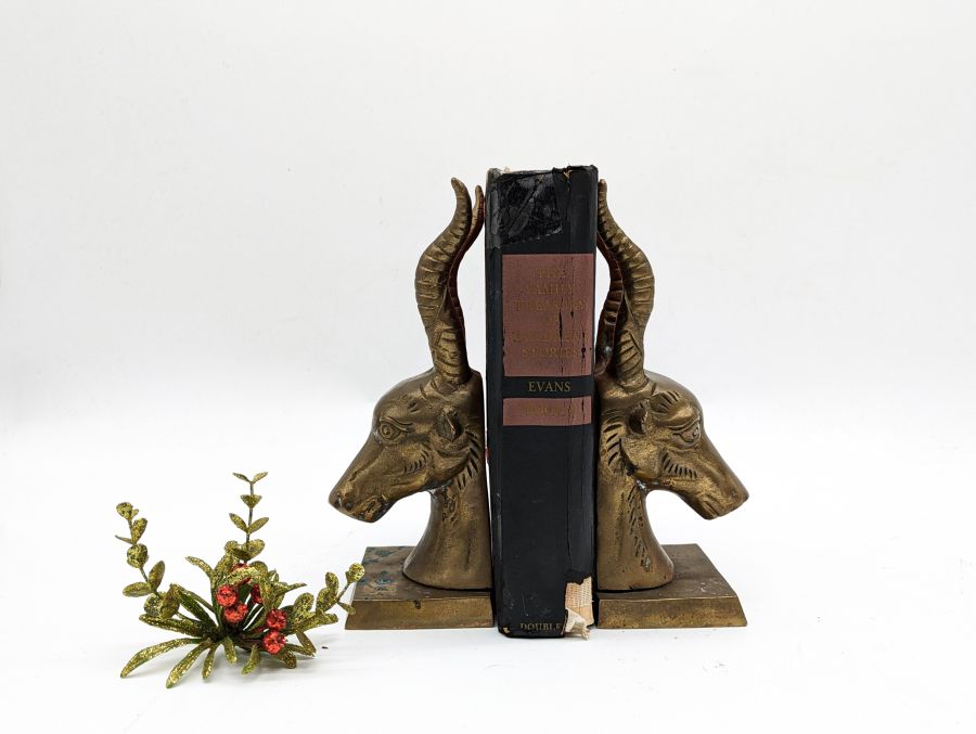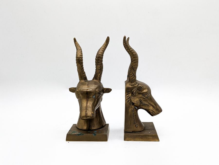 Cặp chặn sách hình đầu linh dương phong cách cổ điển được làm bằng đồng.