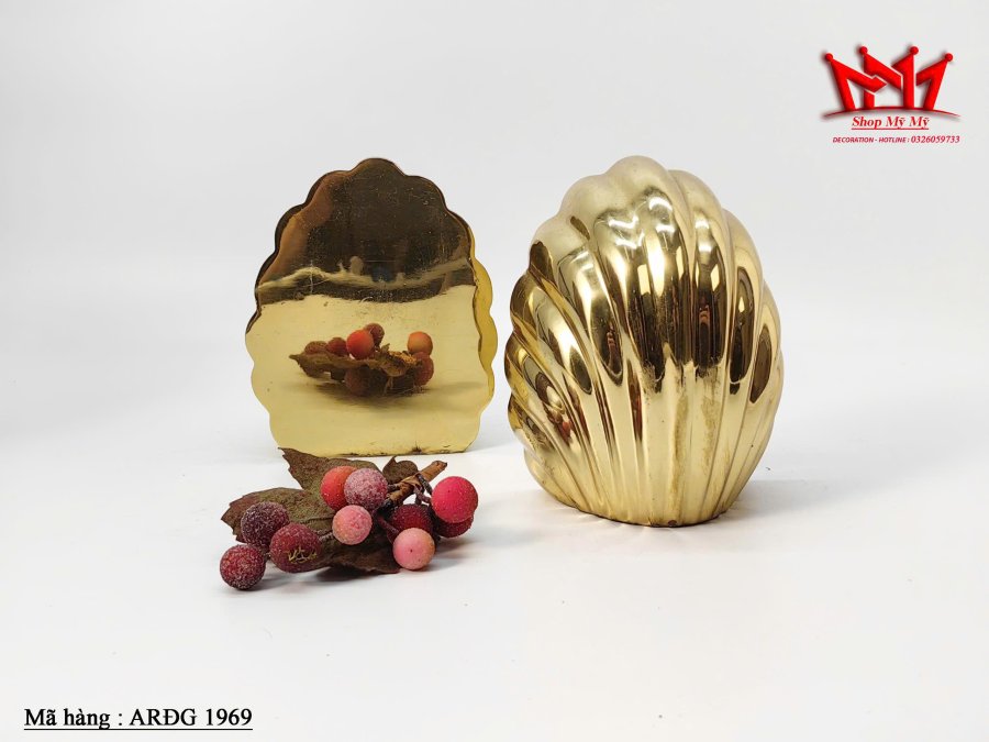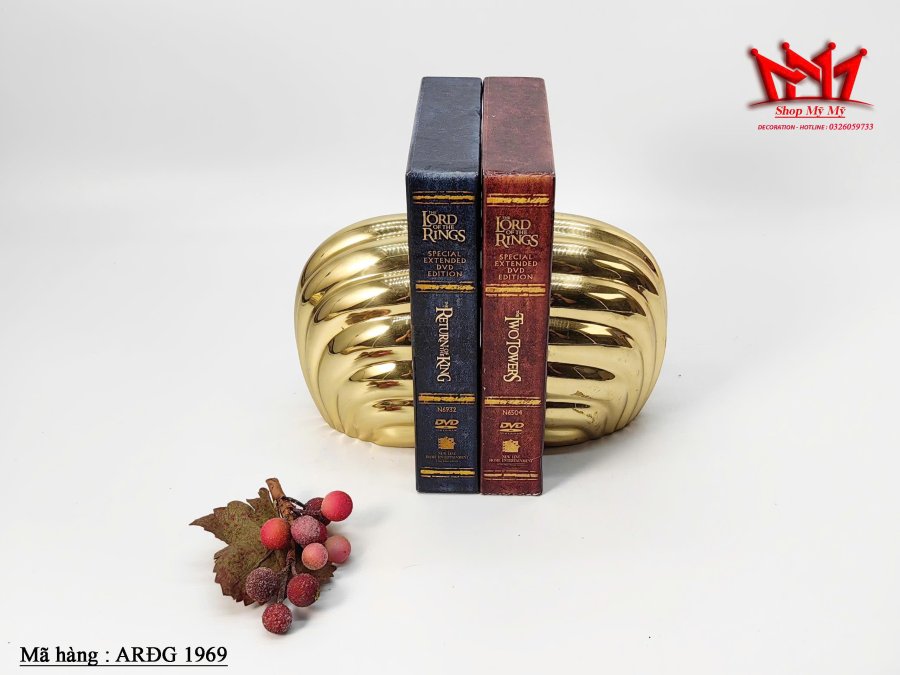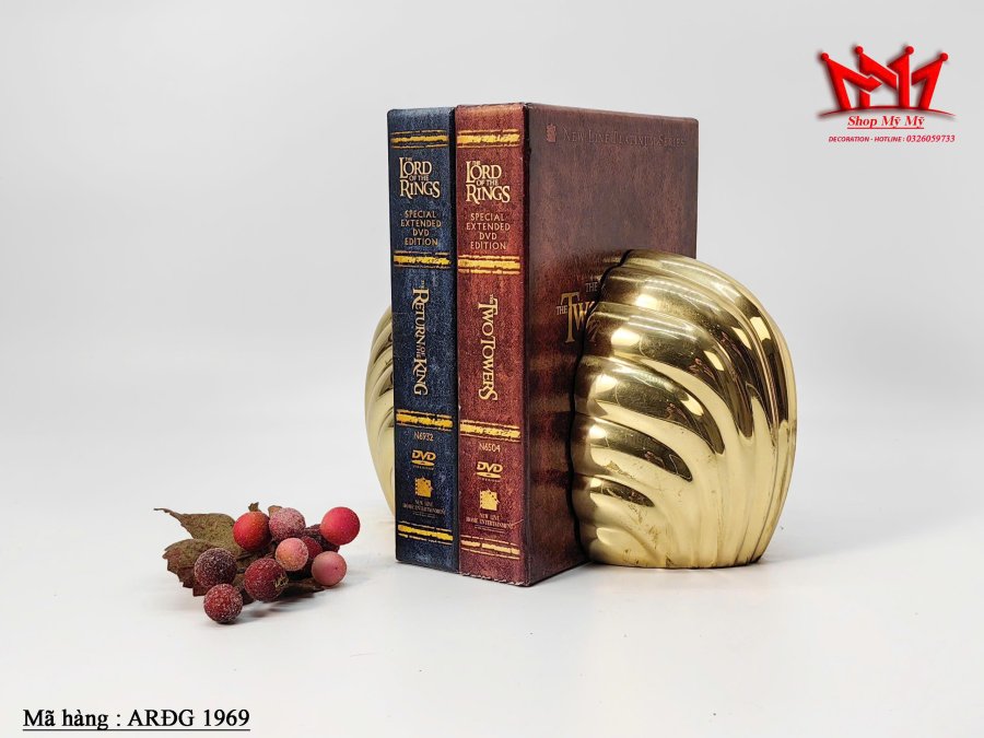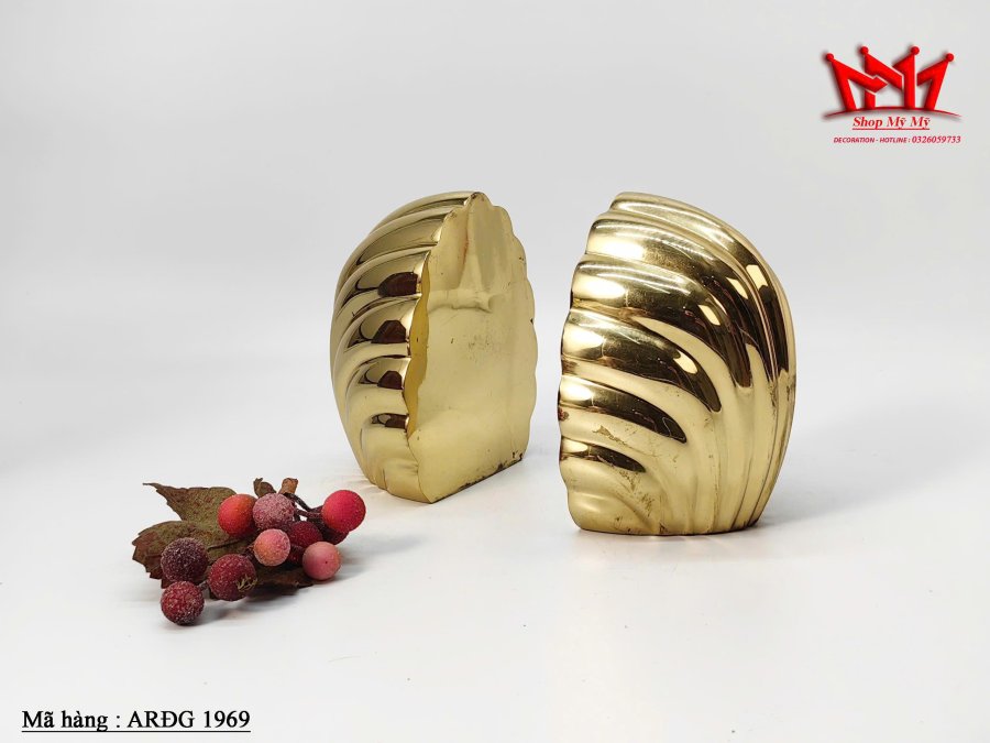 Cặp chặn sách hình vỏ sò dày và nặng được làm bằng đồng vàng sáng