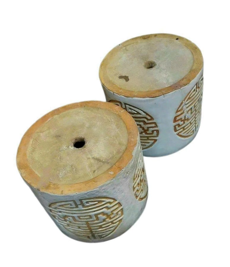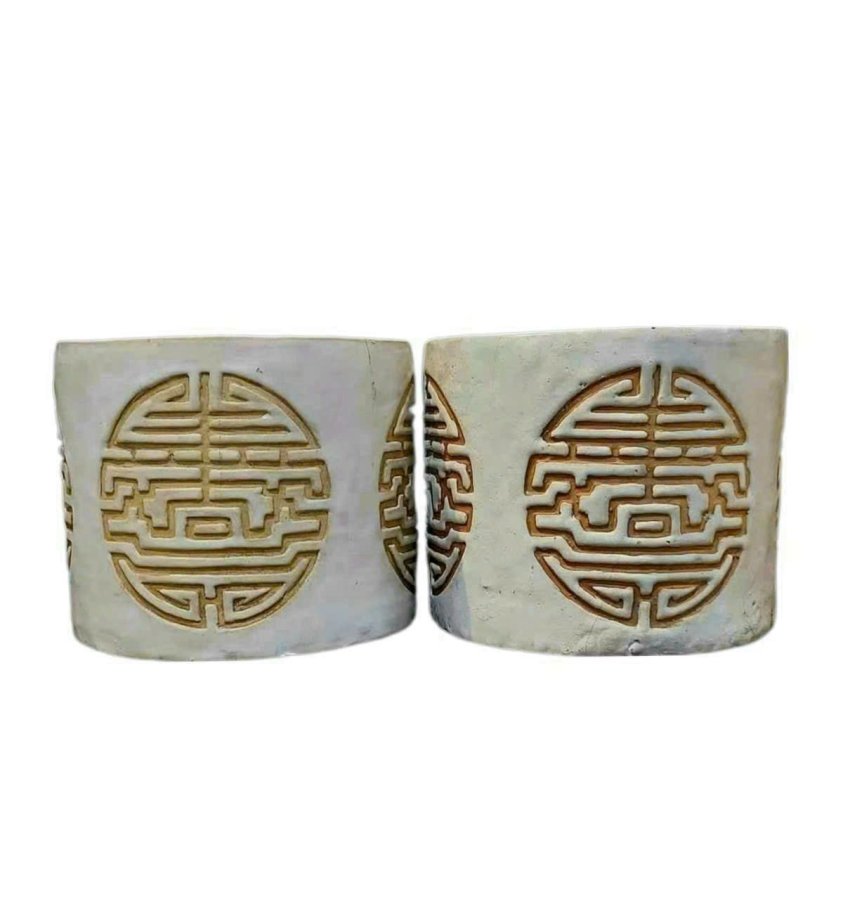 Cặp chậu gốm Thành Lễ men trắng ta,4 chữ Thọ.Cao 18,8cm*đkm 22,5cm.Đáy nẻ lỗi lò đã gia cố keo chắc chắn.