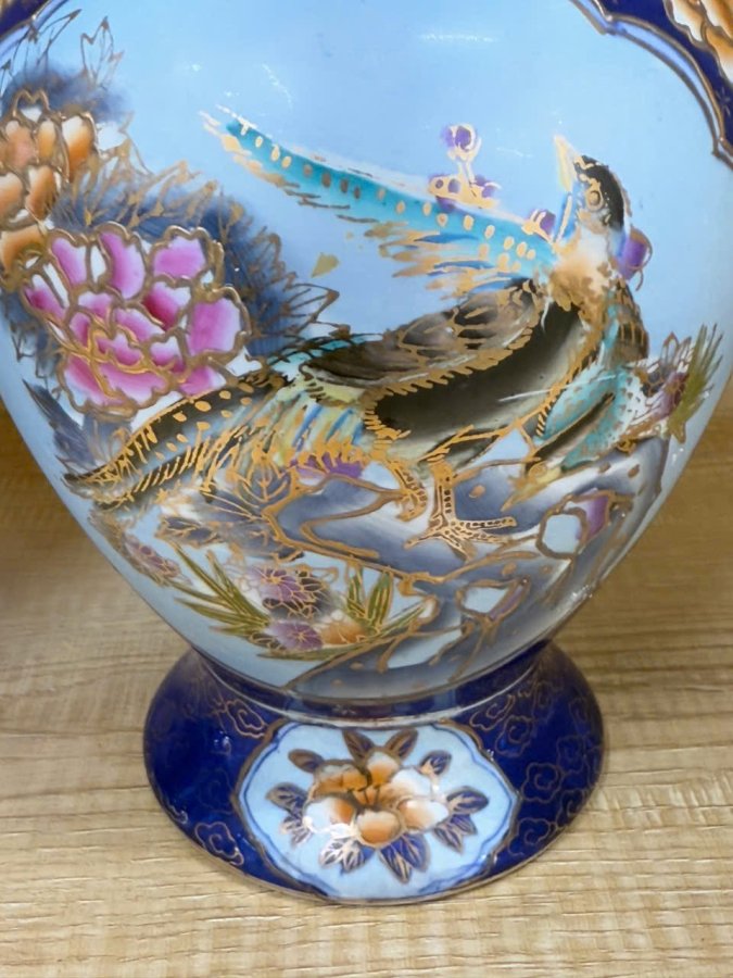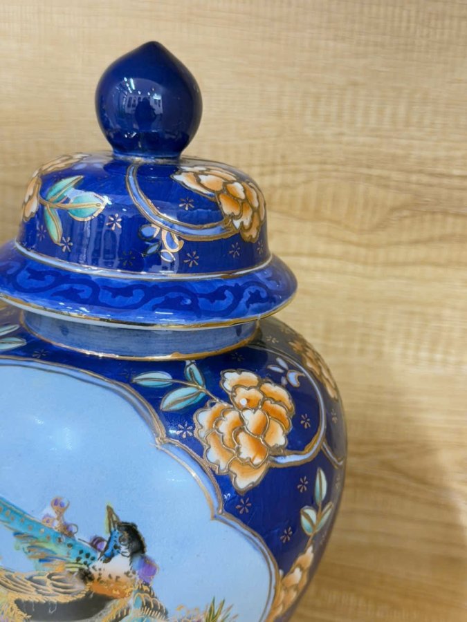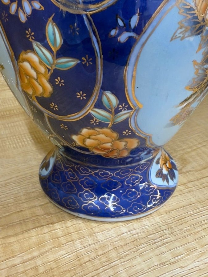 - Hoạ tiết hoa lá và đôi chim vẽ vàng- có triện dưới đáy bình