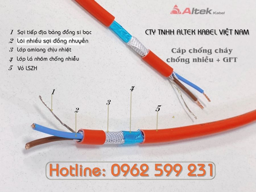 Cáp chống cháy, Cáp chậm cháy, Cáp chịu nhiệt 2 Core + GFT