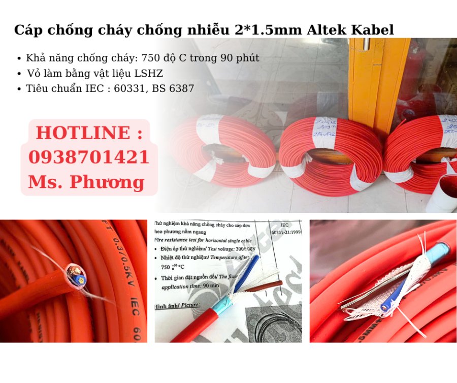 - Loại cáp: Cáp tín hiệu, báo cháy, điều khiển.