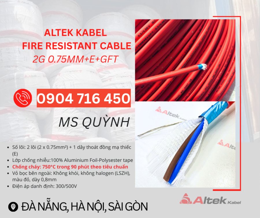 Cáp Chống Cháy Chống Nhiễu 2x0.75mm2 Altek Kabel