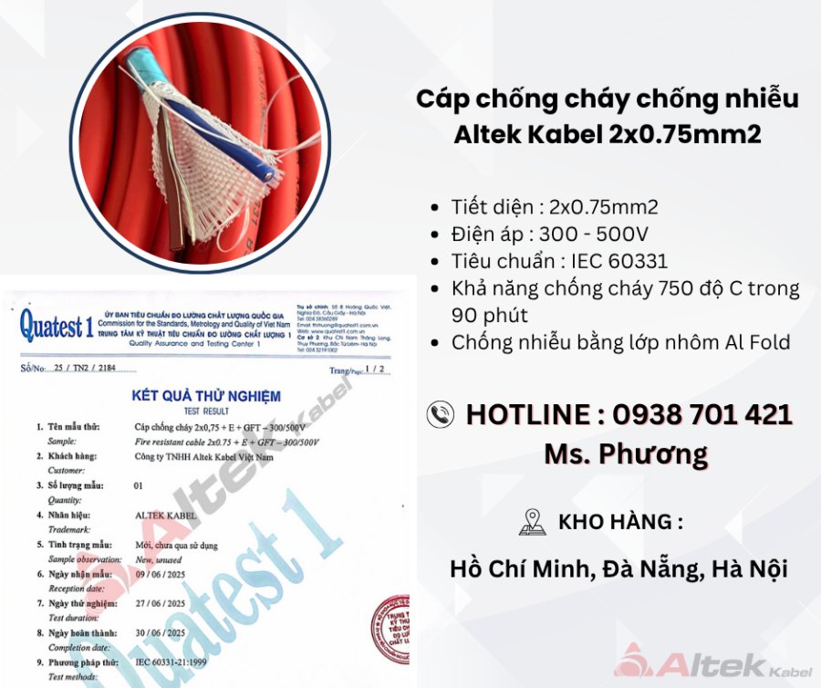+ Khả năng chống cháy 750 độ C trong 90 phút