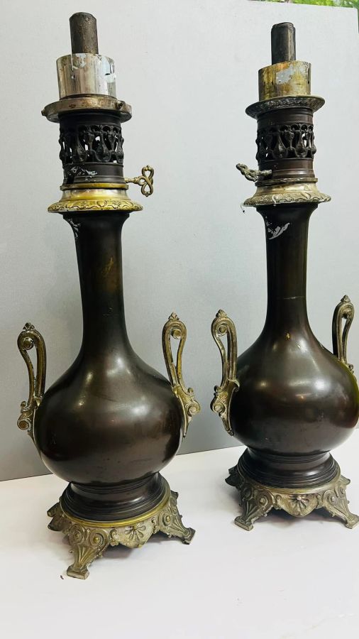 Đèn dầu cá Pháp Cổ sx TK 19 đồng hun trên trăm năm