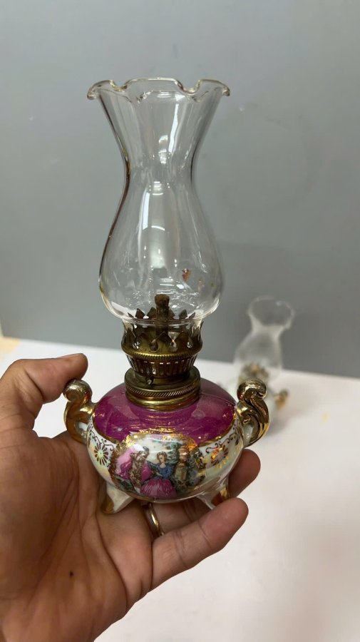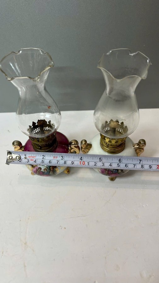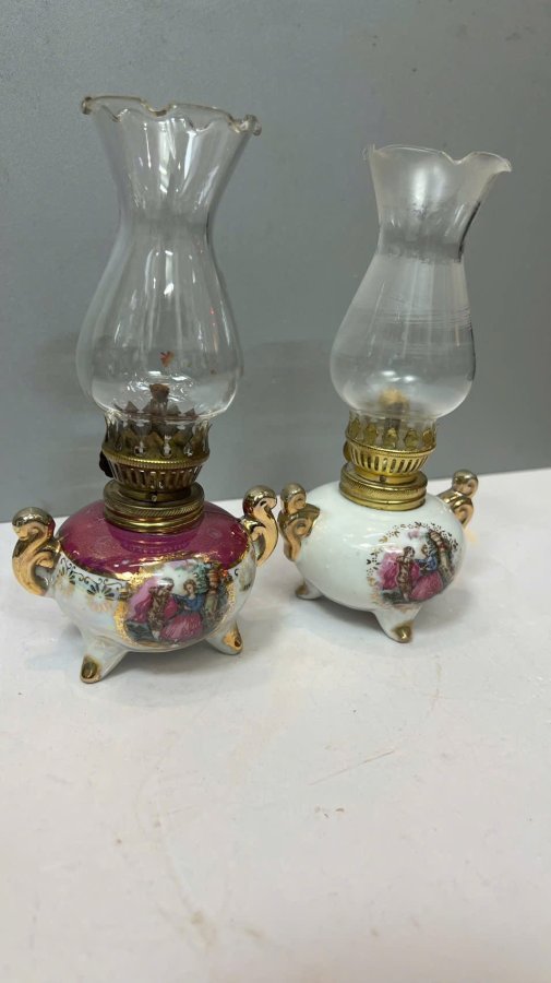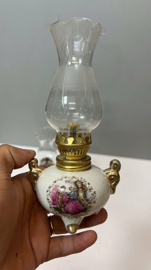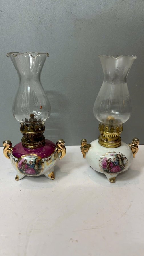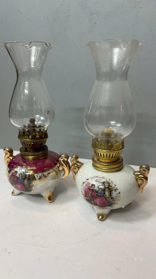 1 cặp Đèn dầu sứ châu âu zin comple