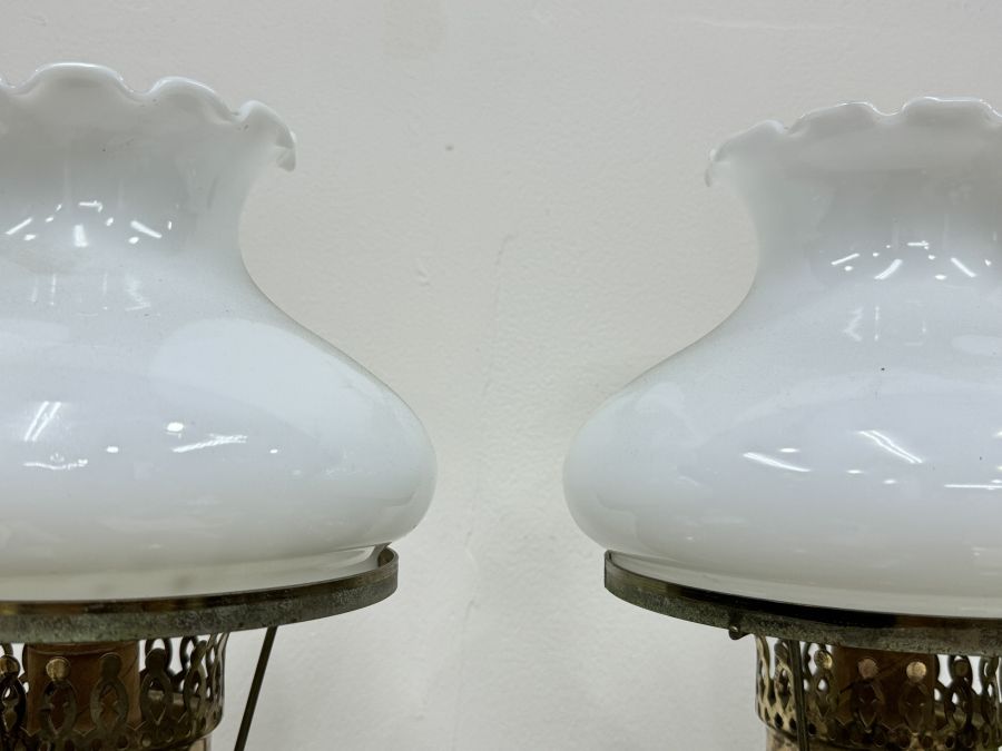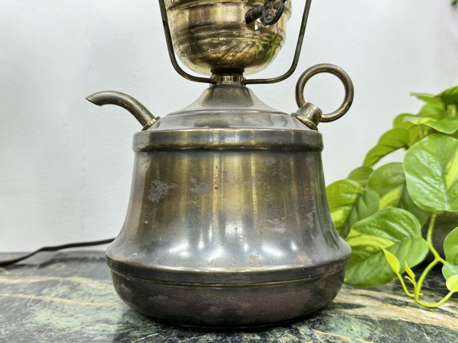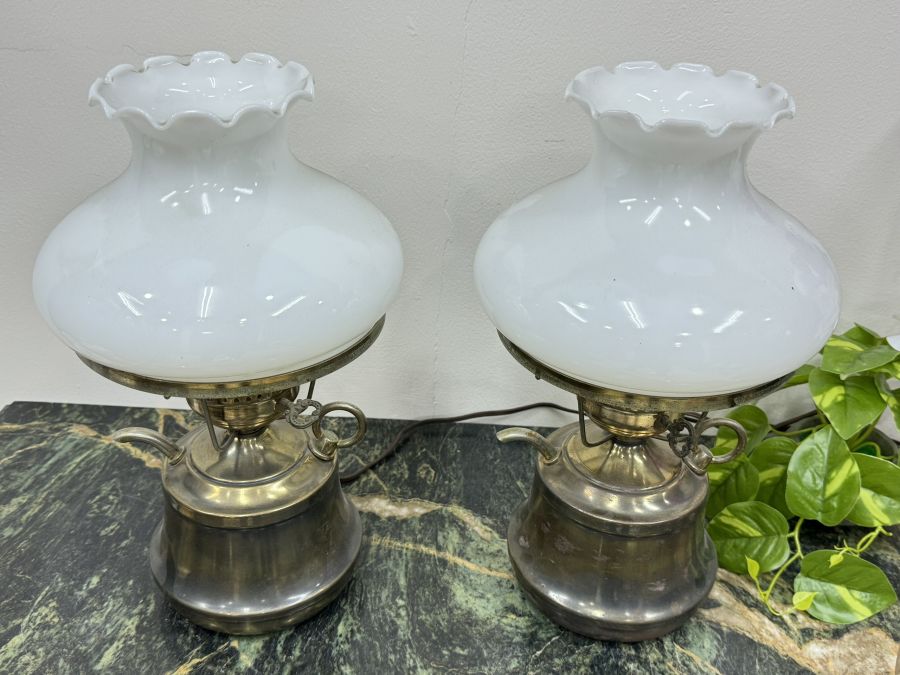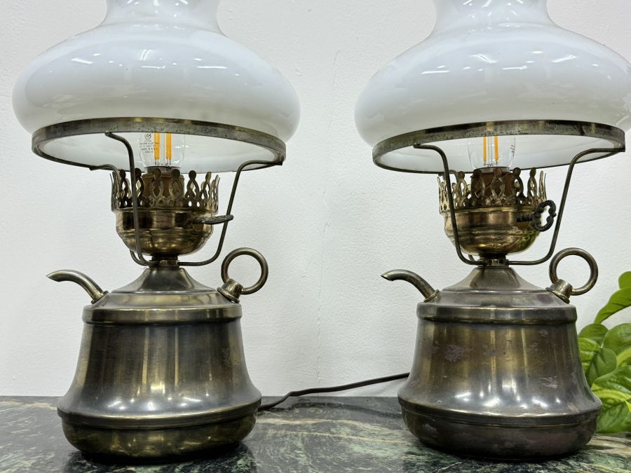 Cặp Đèn Dầu Điện Chao Sứ Bình Đồng Cổ Xưa