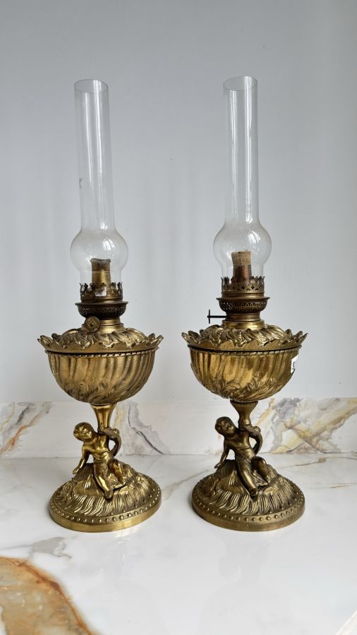 🔥 Cặp đèn dầu Baby đồng xưa pháp / đẹp xuất sắc