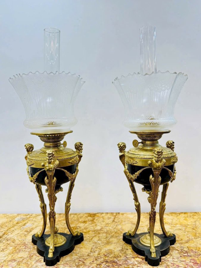 Cặp đèn dầu Emply Pháp cổ - Đẹp - Sang trọng.Lam phale khắc hoa.Hoạ tiết độc đáo,hoa văn đồng . Zin nguyên bản 🔥🔥🔥Kích thước : Cao 60cm , Đk 18cm.Lh 0918560809☎️