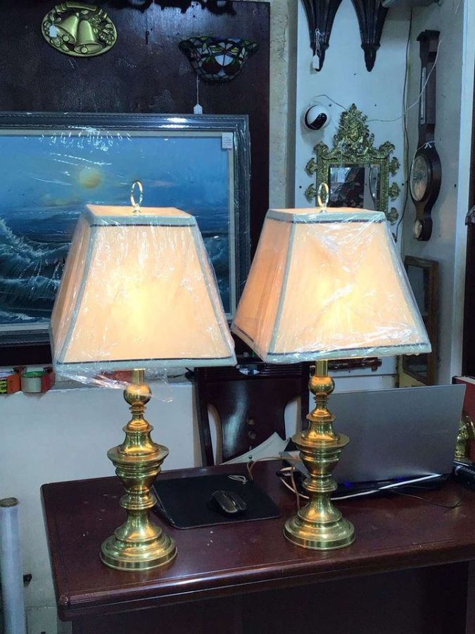 Cặp đèn ngủ bằng đồng cổ điển của Mỹ
