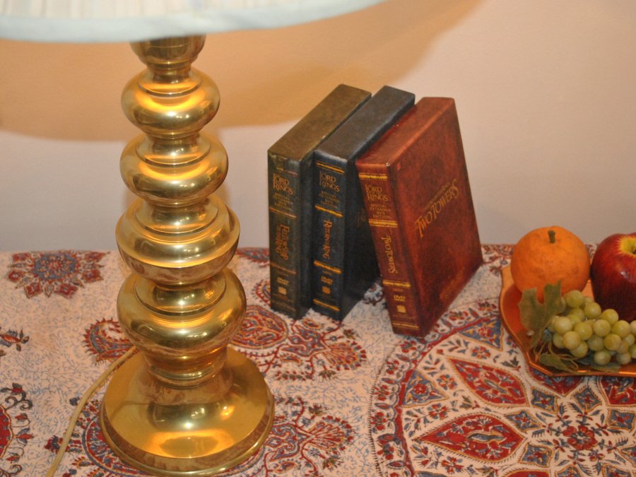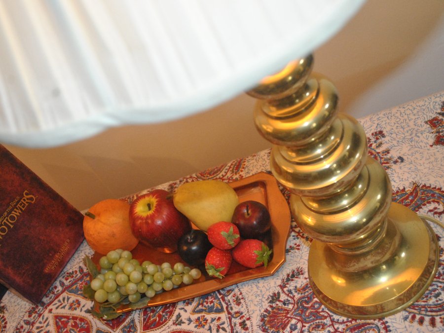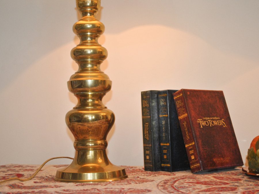 Cặp đèn ngủ thân đồng với nhiều ngấn đẹp mắt.