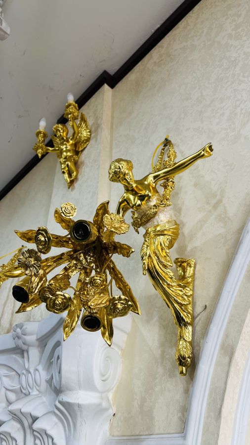 1 Cặp đèn cô gái châu Âu mạ vàng