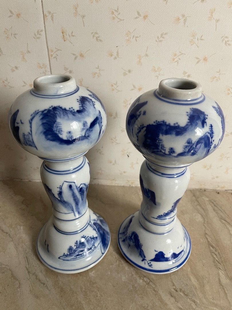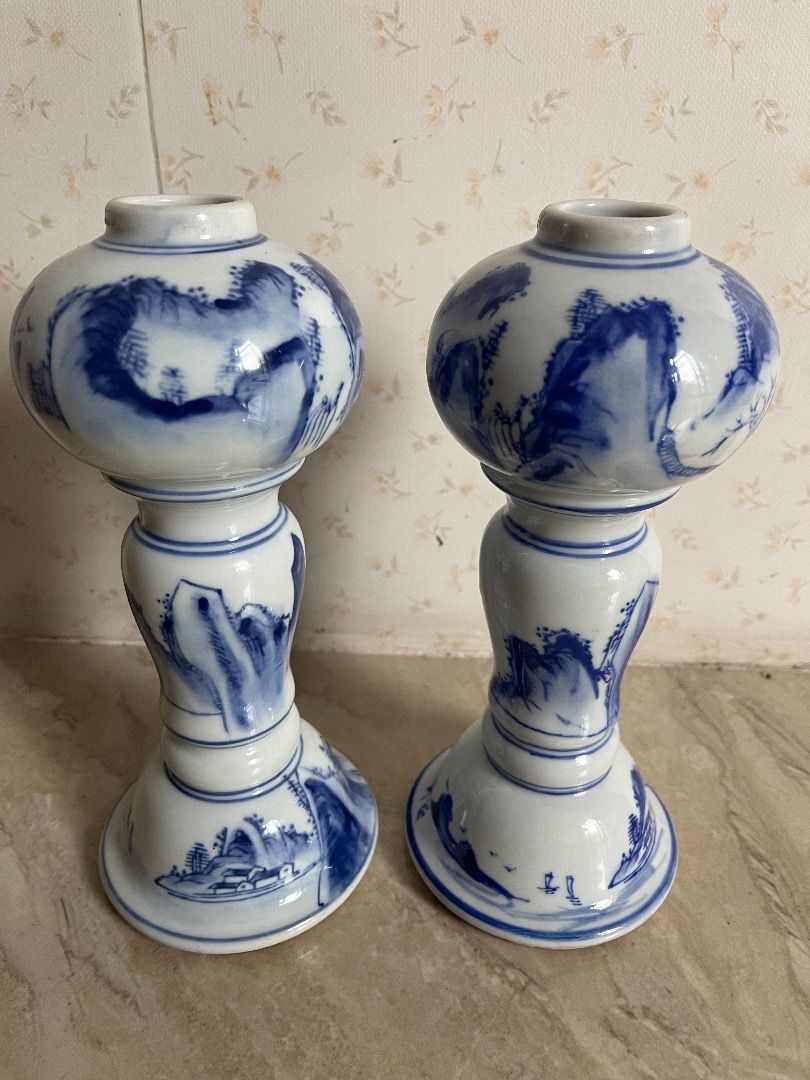 cặp đèn dầu xưa tàu cốt sứ vẽ tay nhuyễn nhừ bao đẹp, đc 1 cặp khá hiếm , chân bầu liền ko phải đồ lắp ghép
