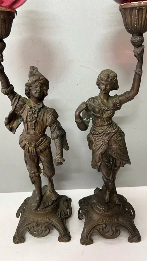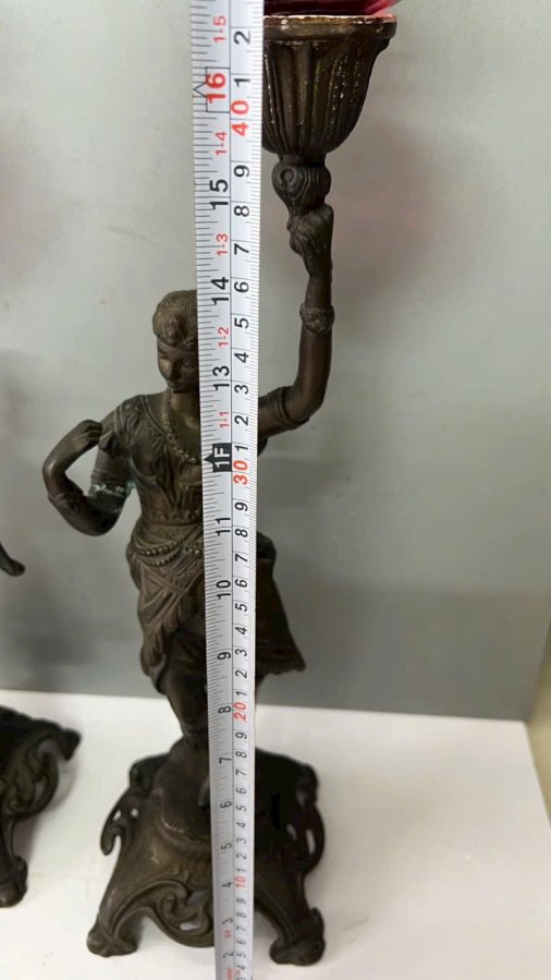 cặp đèn tượng Pháp cổ trên 100 năm,đồng đúc đặt cực kỳ sắc nét , nặng 10kg/1 cặp