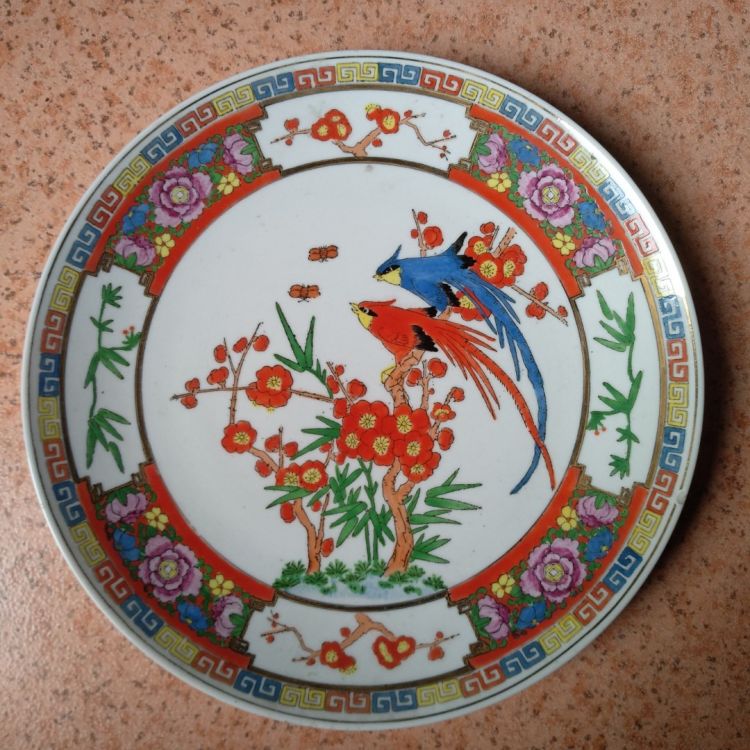 Cặp đĩa treo tường ( có lỗ xỏ dây ) của người Hoa chợ Lớn xưa .