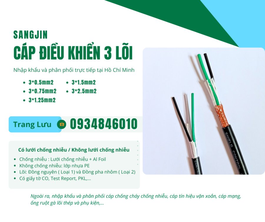 Cáp điều khiển 3x0.5/3x0.75/3x1.25/3x1.5/3x2.5 Đồng Nai, Vũng Tàu, Khánh Hòa