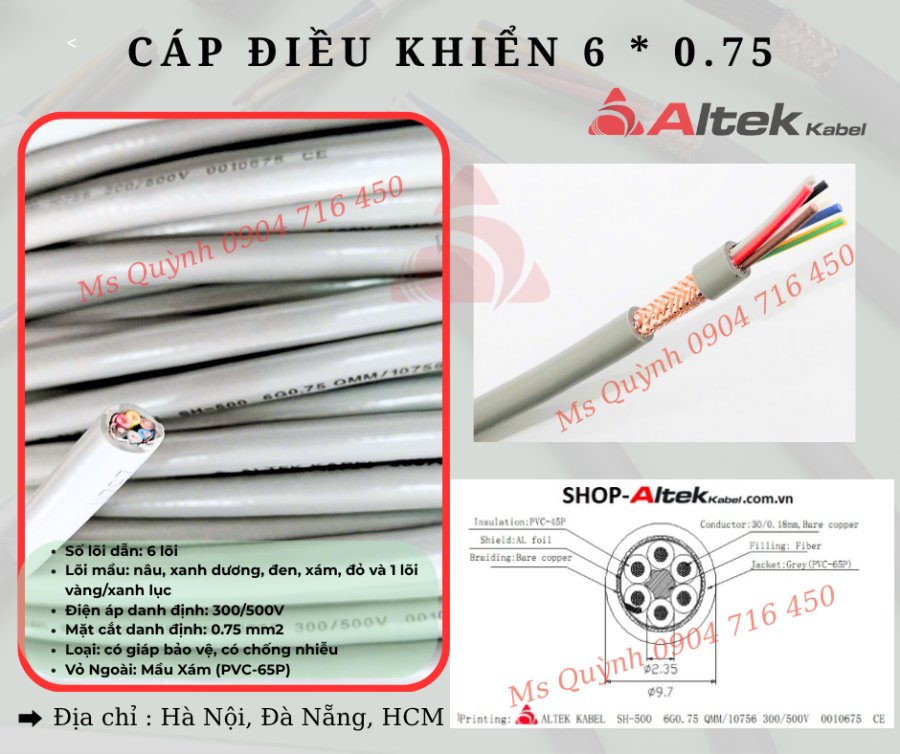 Cáp điều khiển có lưới chống nhiễu Altek Kabel 6x0.75mm2