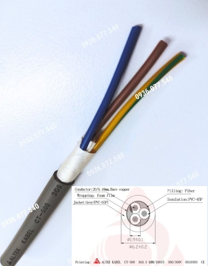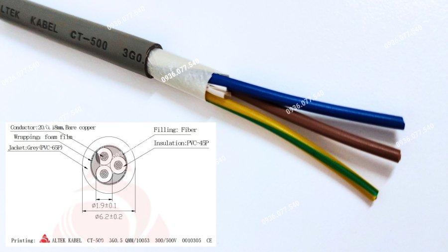 - Tiết diện lõi đồng: 0.5mm² / 0.75mm² / 1.0mm² / 1.5mm²