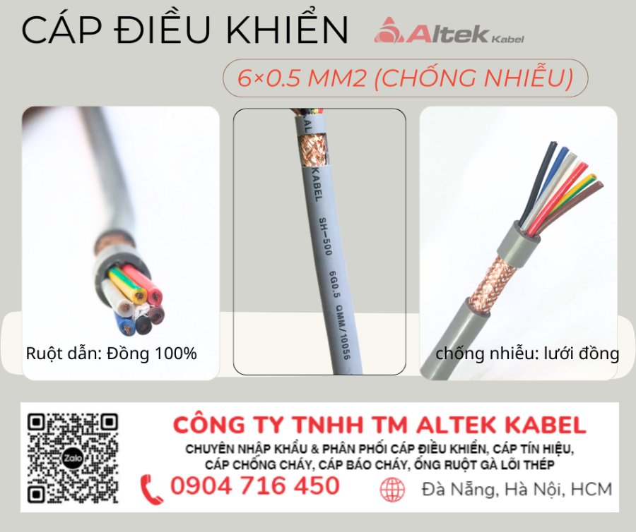 Cáp điều khiển có lưới chống nhiễu Altek Kabel 6x0.5mm2