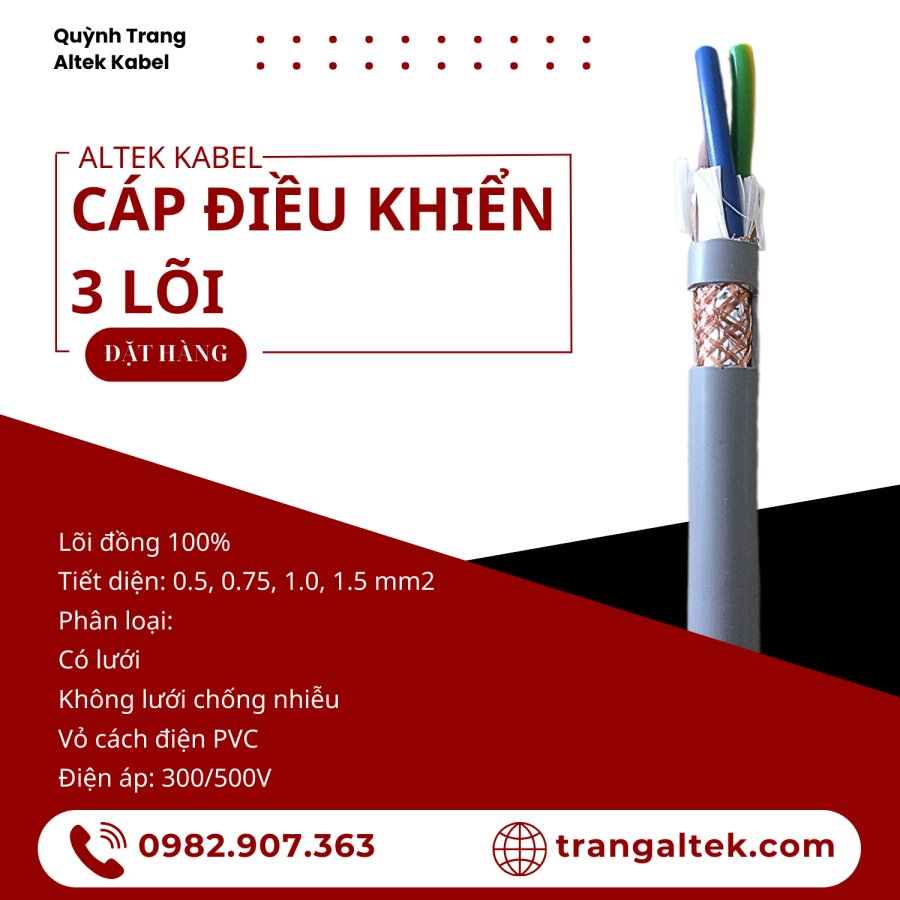 Cáp điều khiển đồng mềm 3 lõi vỏ xám Altek Kabel