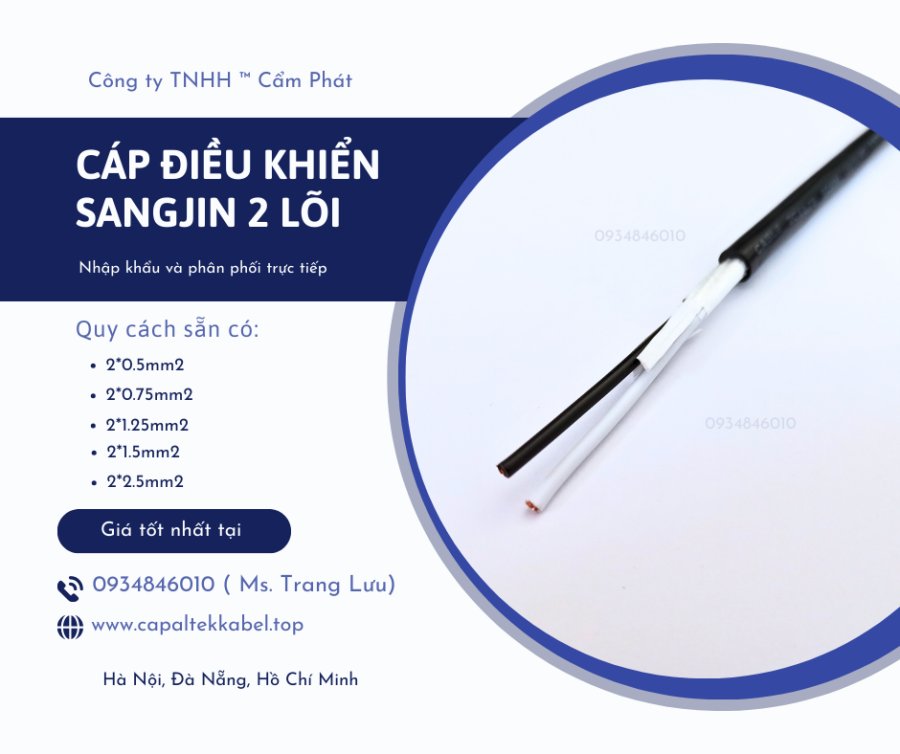 Cáp điều khiển Sangjin 2x0.5/2x0.75/2x1.25/2x1.5/2x2.5 Bình Dương, Đồng Nai, HCM
