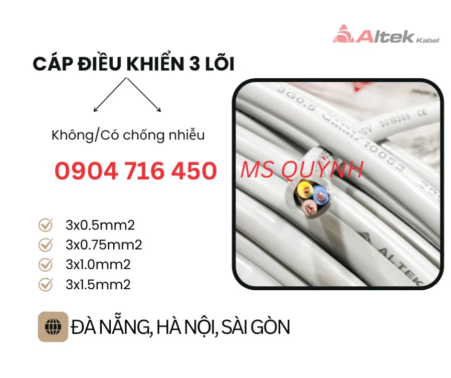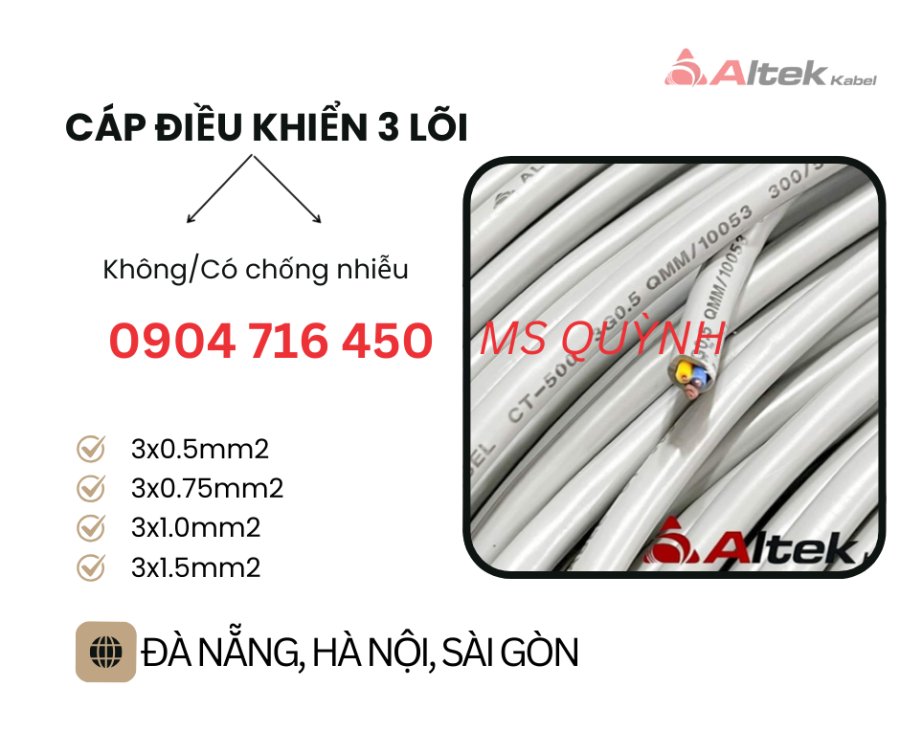 cáp điều khiển 3 lõi ko lưới và có lưới chống nhiễu Altek Kabel