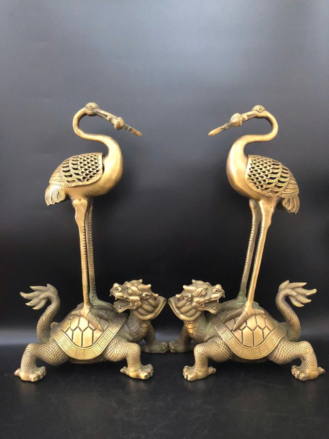 Cặp đỉnh trầm Long quy cõng hạc bằng đồng (ĐX-243)