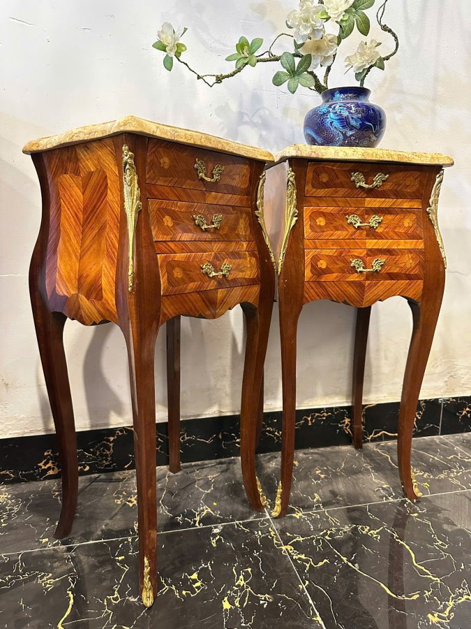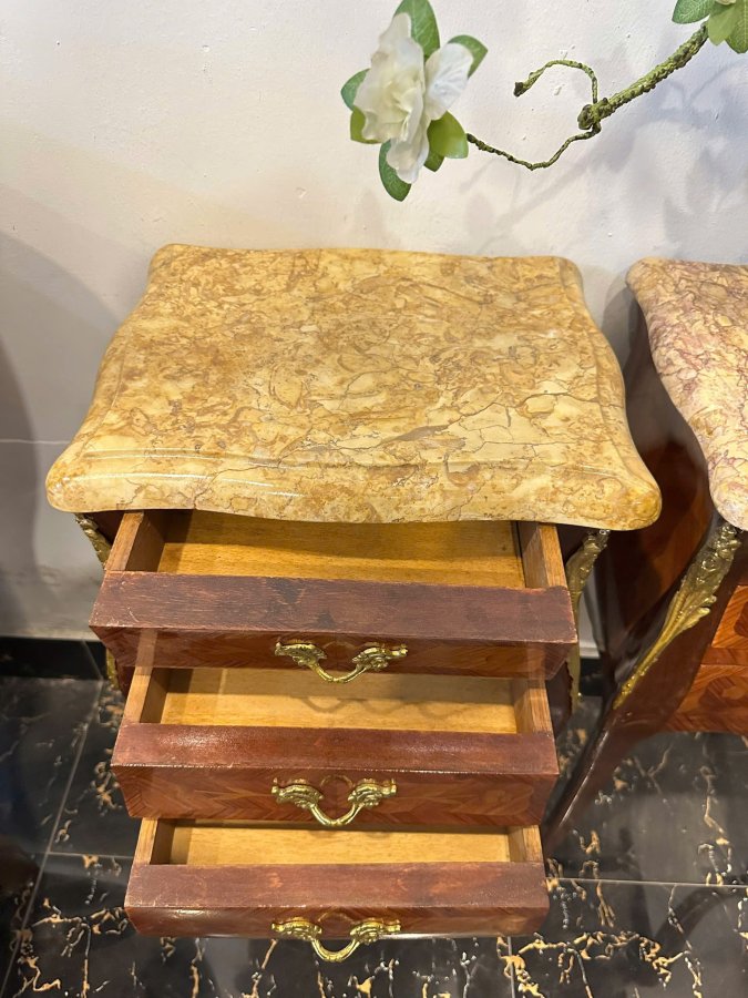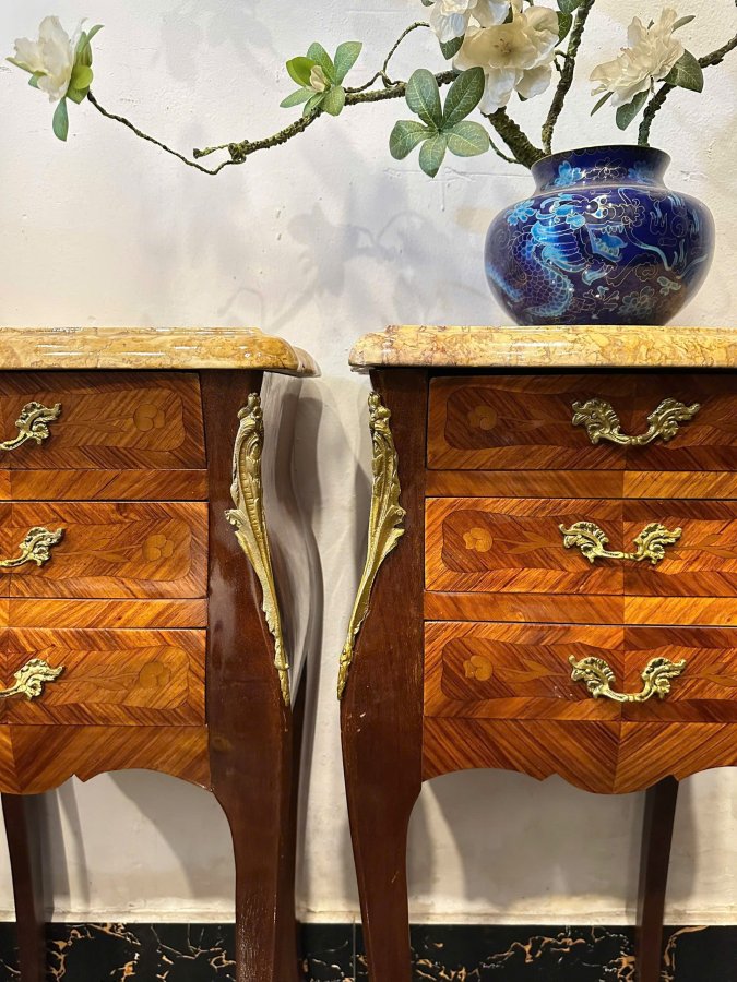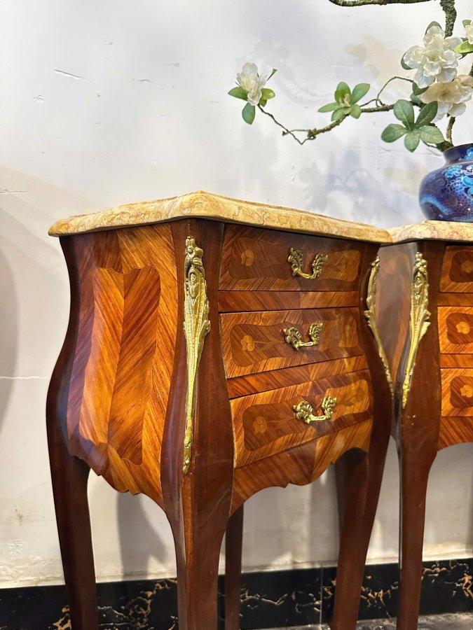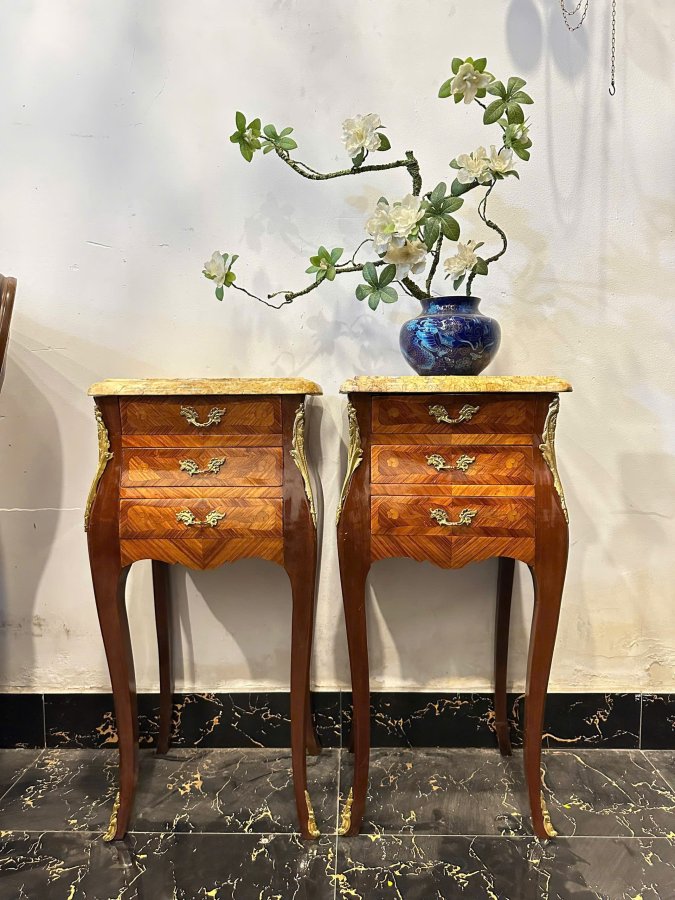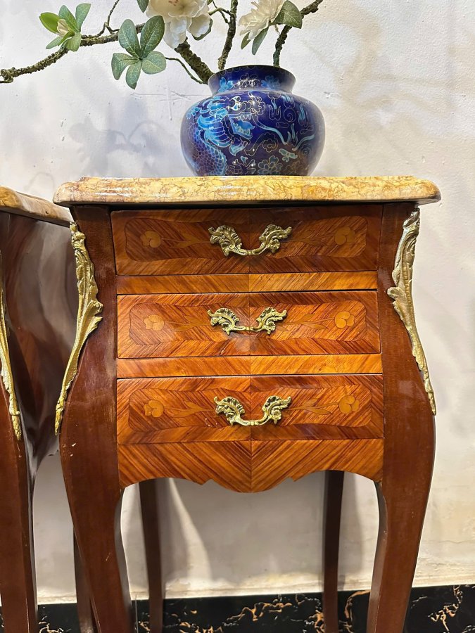 Cặp Đôn Louis Pháp 3 Ngăn Bọc Đồng Phối Đá Cẩm Thạch