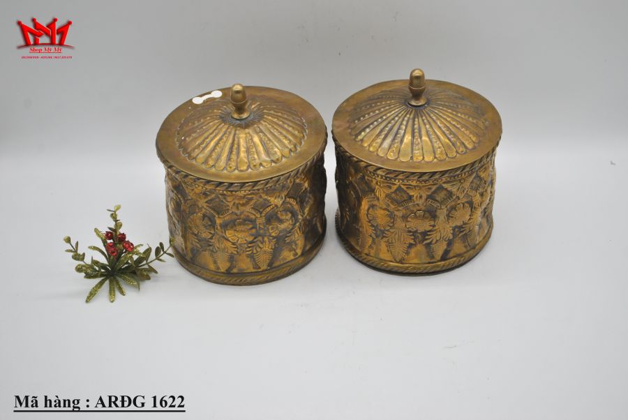 Cặp hủ bằng đồng họa tiết được dập nổi Xuất xứ ; Châu ÂuKích thước : cao 20cm, rộng 16cmTrọng lượng : 800gr/1 cáiGiá : Xin liên hệ shop.