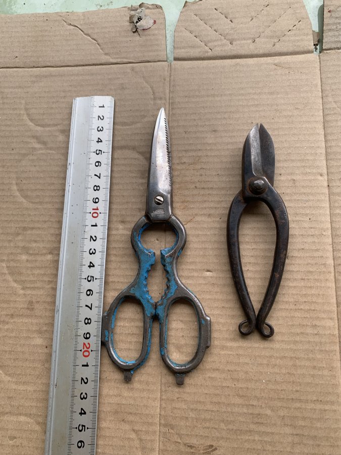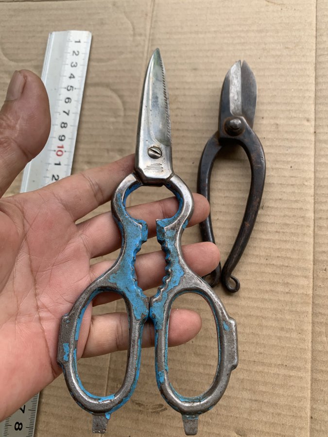 Bộ sản phẩm gồm 1 kéo bếp của Feather và 1 kéo cá làm thủ công. Cả hai có bụi bẩn và rỉ sét do chưa vệ sinh nhưng vẫn lành nguyên sử dụng tốt. Cám ơn đã xem tin.