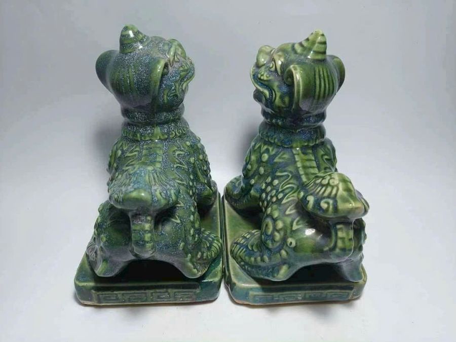 Cặp kỳ lân 1 sừng gốm Lái Thiêu cũ.Cao 22cm*19cm.