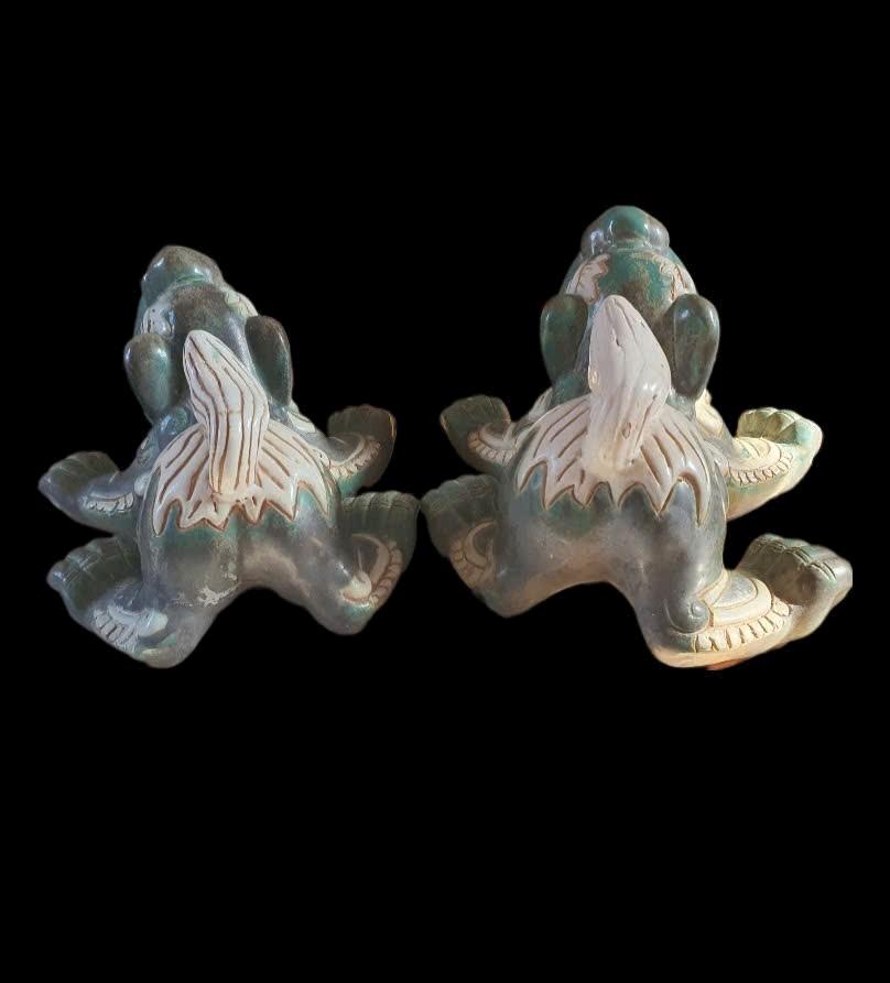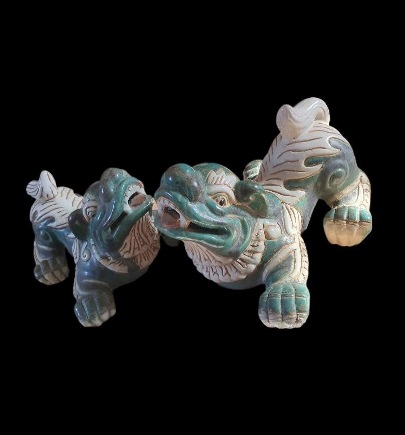 Cặp lân giỡn vert de Biên Hòa ko mộc,trổ đồng đẹp.Cao 16cm*26cm*23cm.1 con bị nứt 1 chân sau