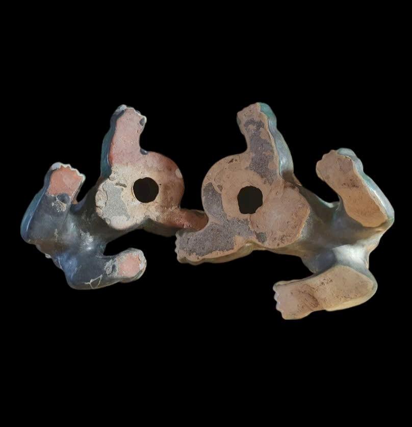 Cặp lân giỡn vert de Biên Hòa ko mộc,trổ đồng đẹp.Cao 16cm*26cm*23cm. 1 con bị nứt 1 chân s