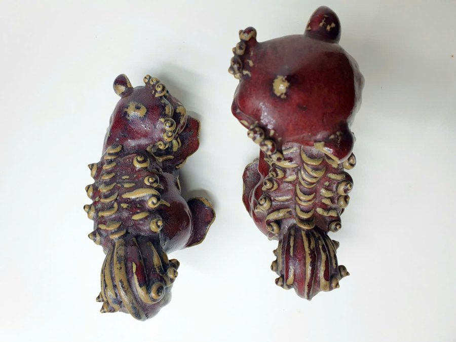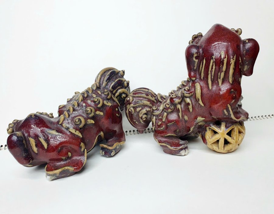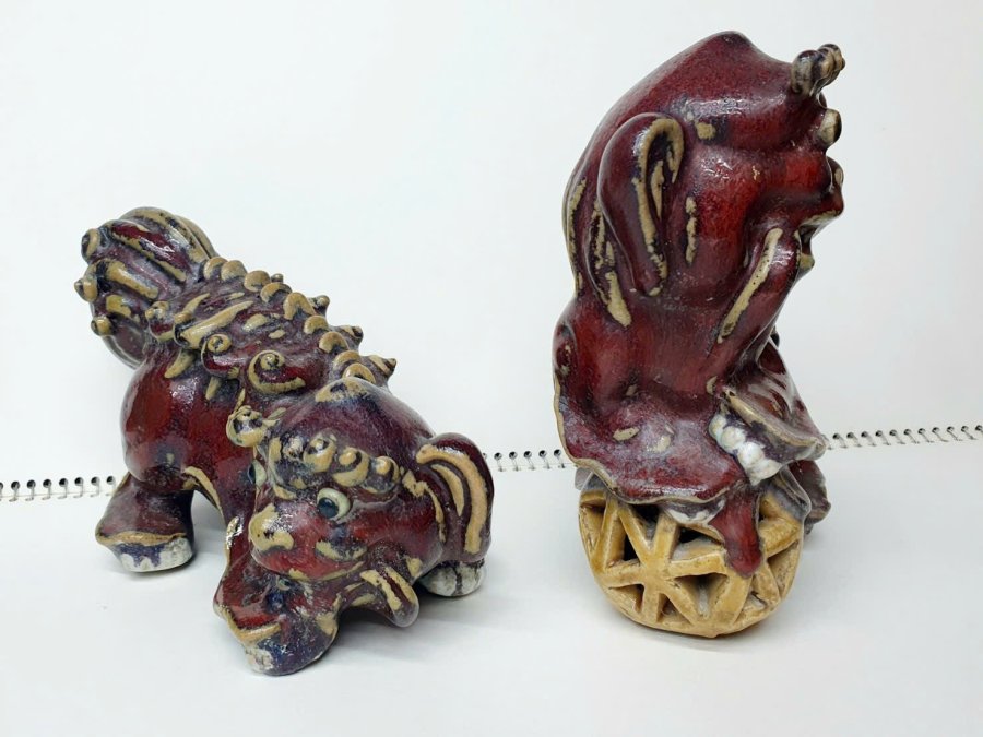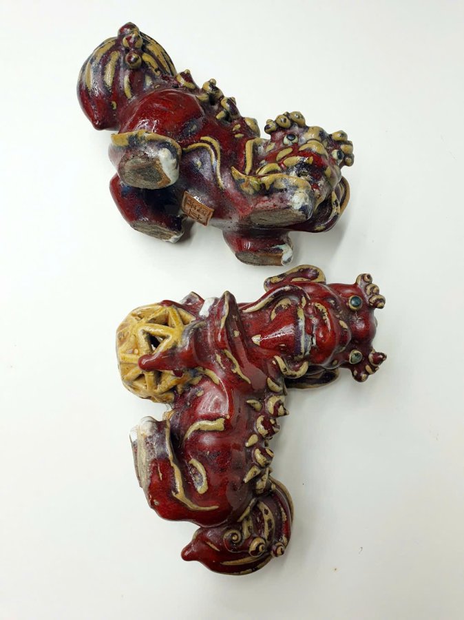Cặp Lân men huyết dụ của đại nghệ nhân dòng gốm ShiWan xưa.Triện rõ ràng.Kèm ảnh tư liệu quốc tế cho khách tham khảo.