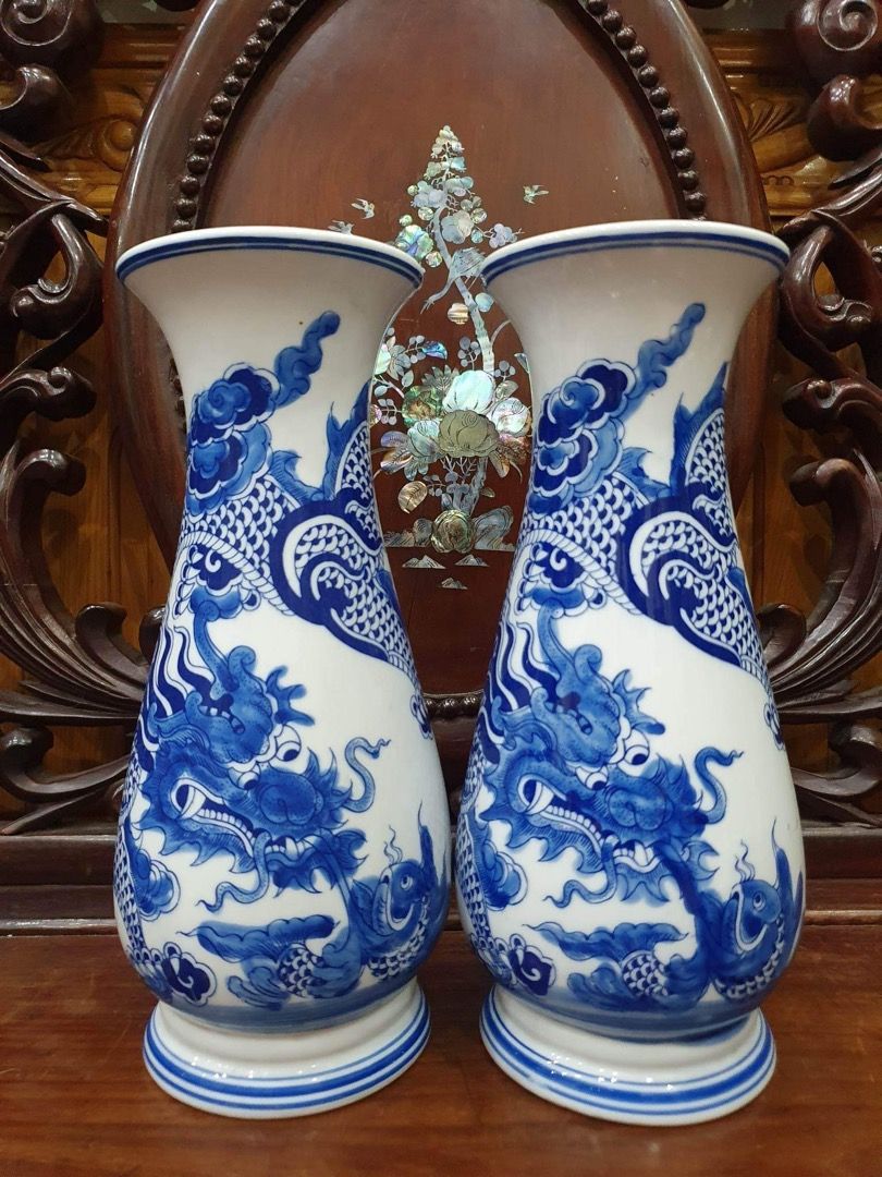 Cặp bình Bát Tràng vẽ Rồng rất đẹp .