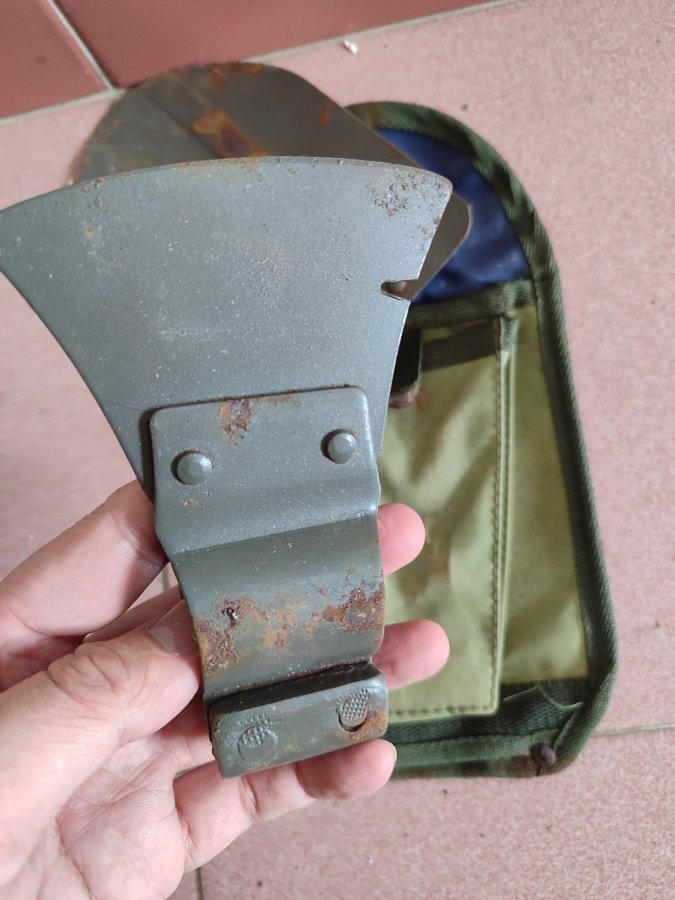 Cặp lưỡi xẻng và lưỡi rìu hàng Nhật xưa, hàng chưa qua sử dụng, để lâu năm bị gỉ sét, ae mua về zủa lý, làm cán lại dùng