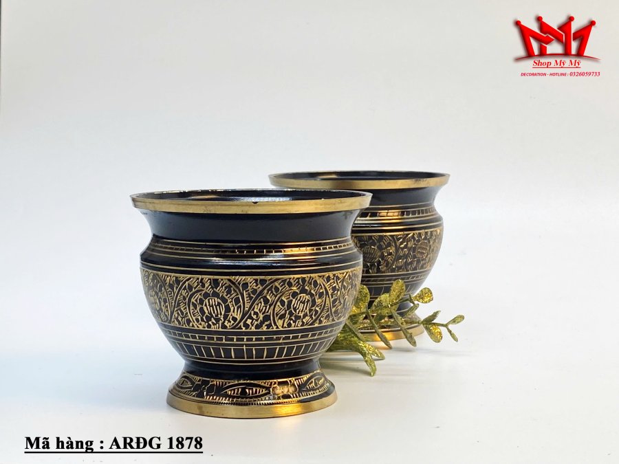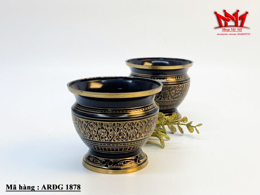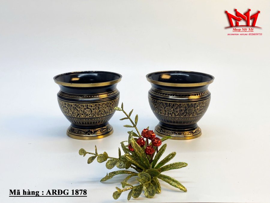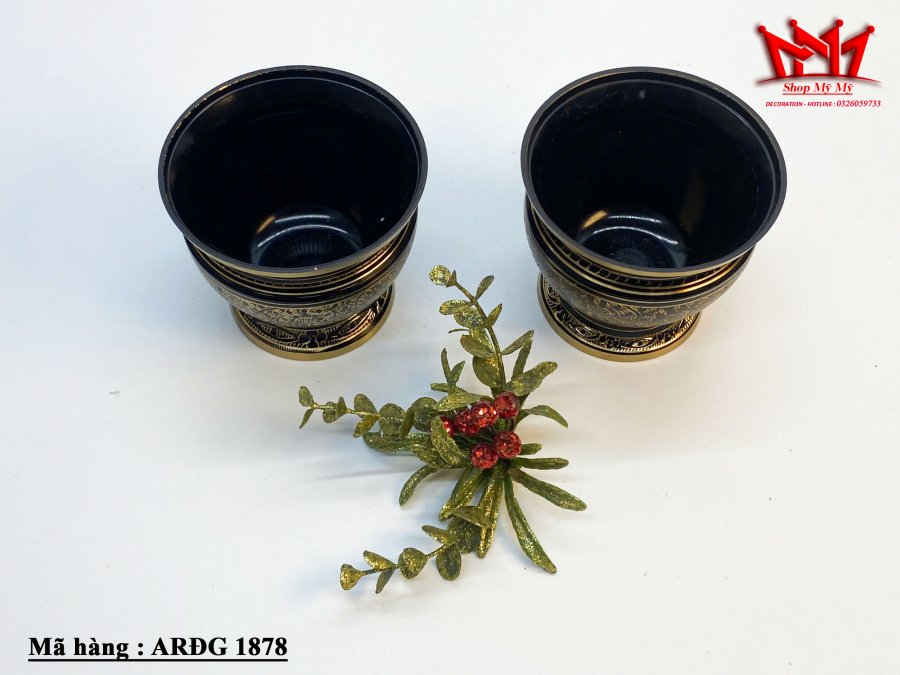 Cặp ly đồng họa tiết hoa văn cắt tay.