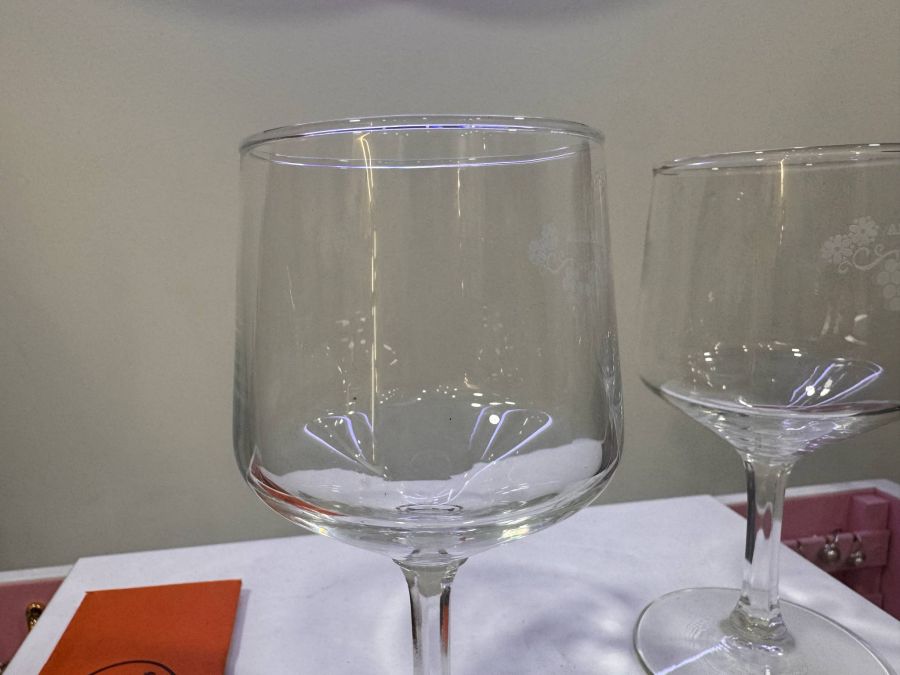 Cặp ly ******* vang họa tiết nho Akadama Japan. Cao 13,5cm. Đk 6cm. Em gl 200k