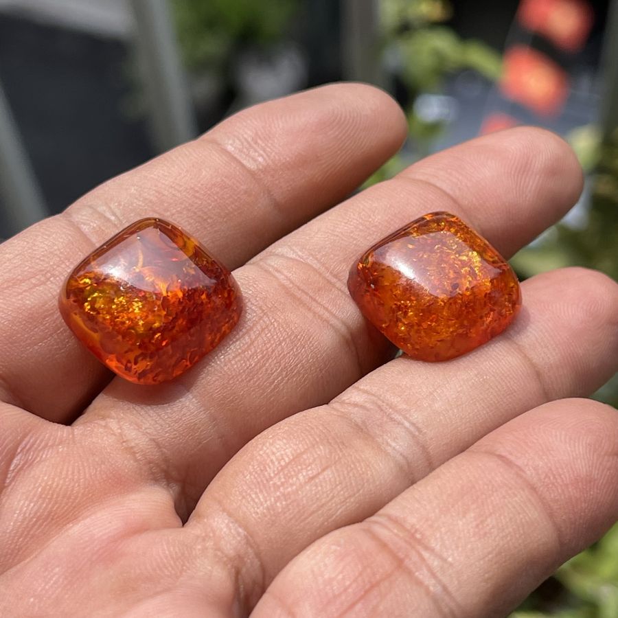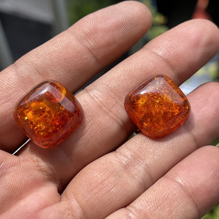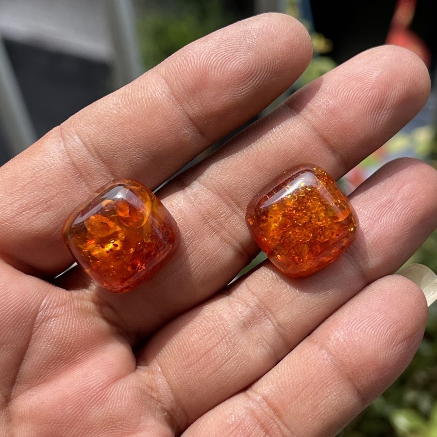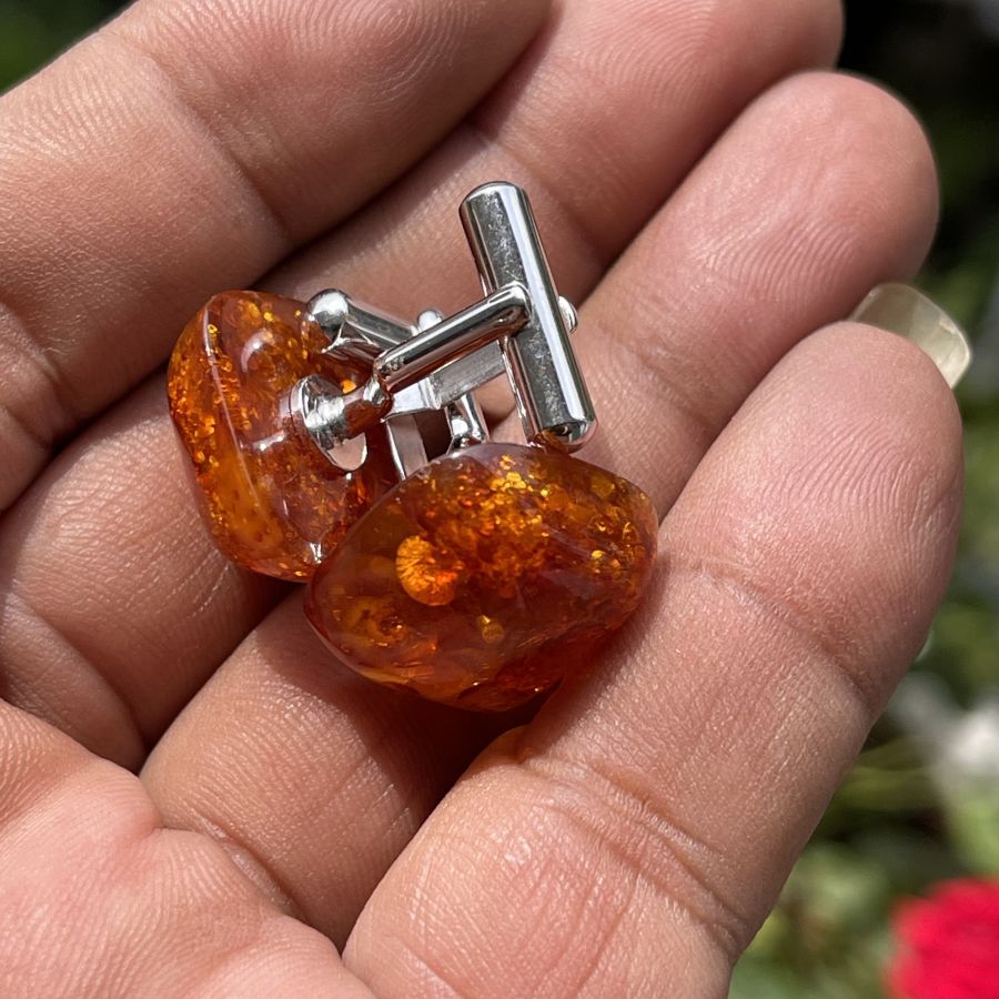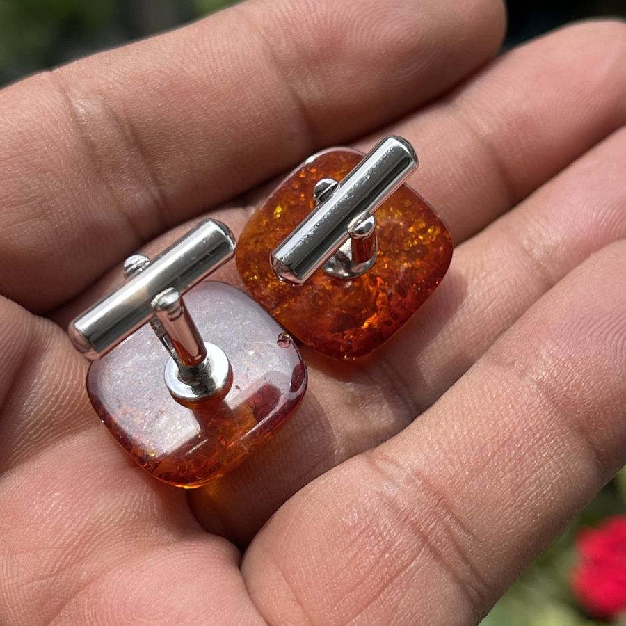 Cặp măng sét xưa bằng hổ phách nở hoa thiên nhiên được chế tác bộ khung hợp kim chính hãng Nhật bản - size 13 x 13 - Tình trạng ít gặp đẹp - Giá chuẩn 479k ( KMC ). Kính mời