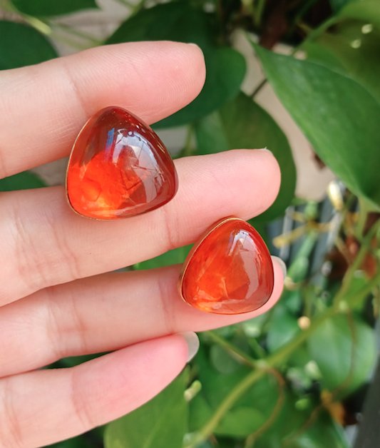 Cặp măng sét hổ phách mật ong bóng đẹp, khung lắc kê vàng cực sang