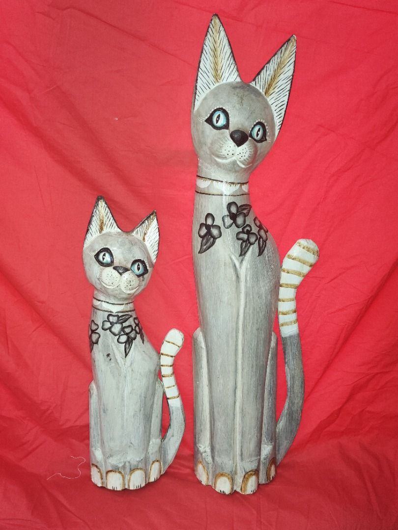 Thuộc thể loại phong thủy Nhật bản. Chế tác trên gỗ cây dó bầu hương nhẹ. Con lớn cao 59 cm, con nhỏ cao 39. Ae gl xem ảnh! Cám ơn!