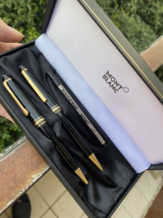 Giao lưu Cặp Montblanc Germany Zin Fullbox likenew. Model chất chơi sưu tầm đẳng cấp cho doanh nhân. Đờ mi lắc kê vàng long lanh như mới.