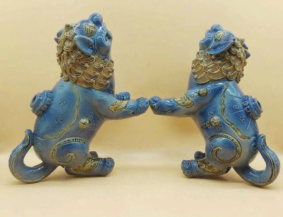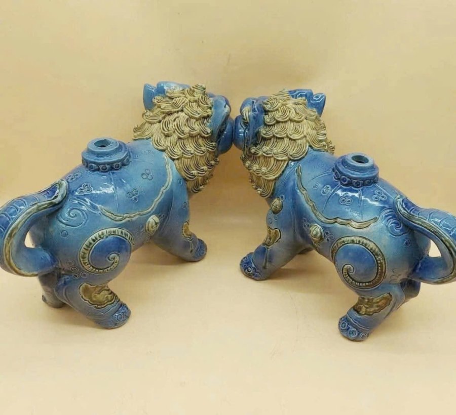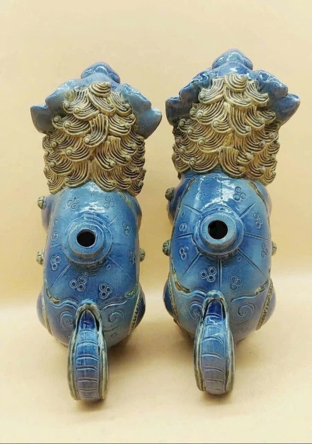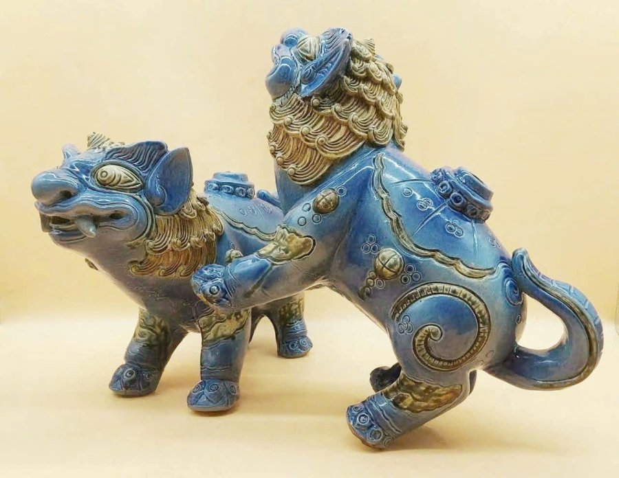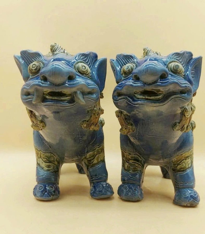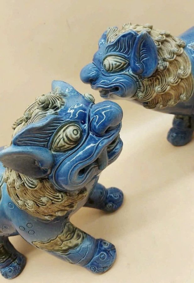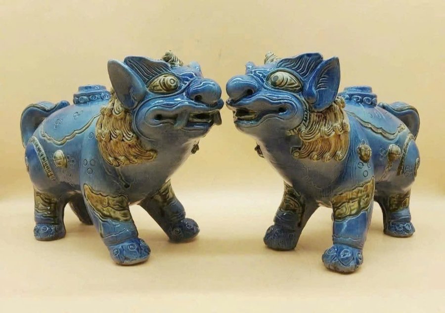 Cặp nghê men lĩnh lam.Cao 25cm*dài 40cm.